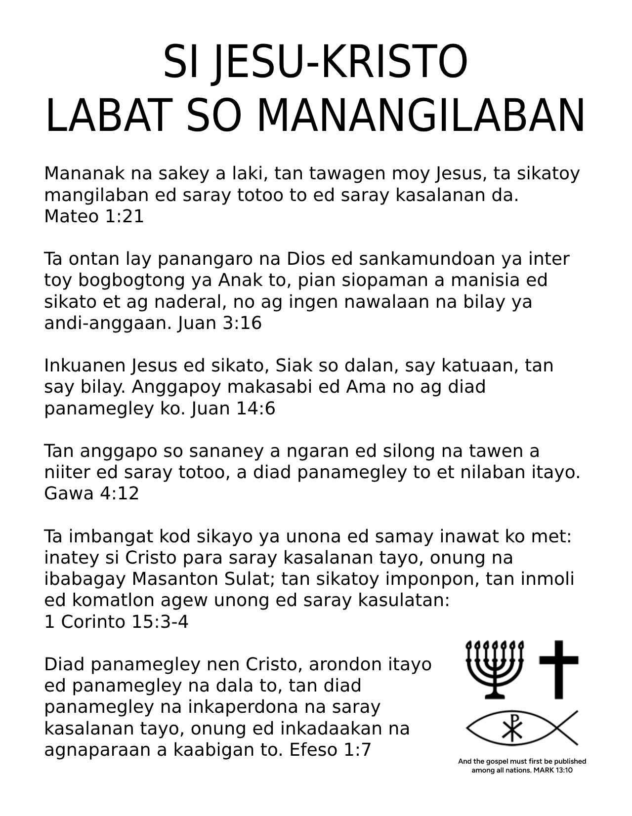 Pangasinan Gospel Tract - ONLY JESUS CHRIST SAVES