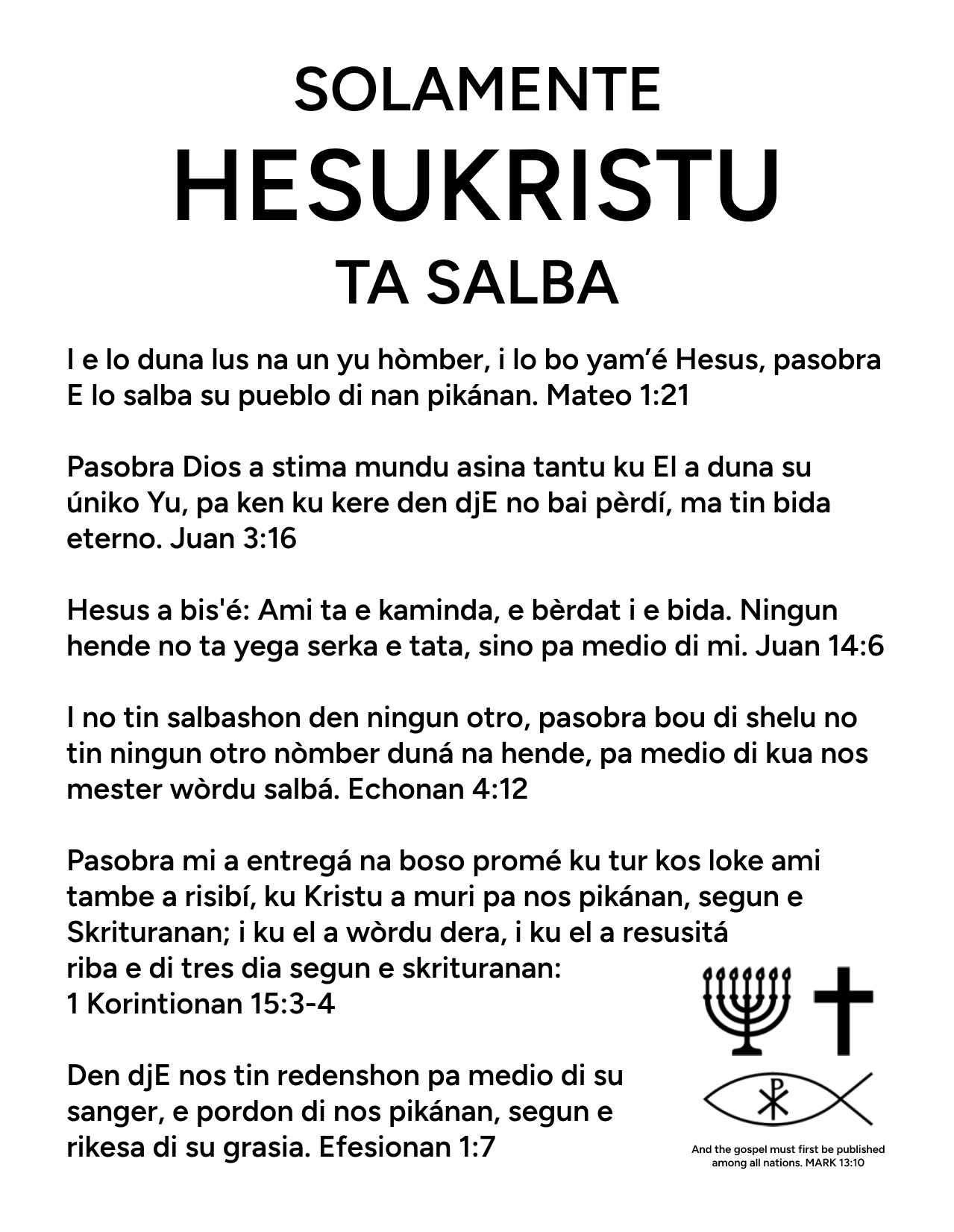 Papiamento Gospel Tract - ONLY JESUS CHRIST SAVES