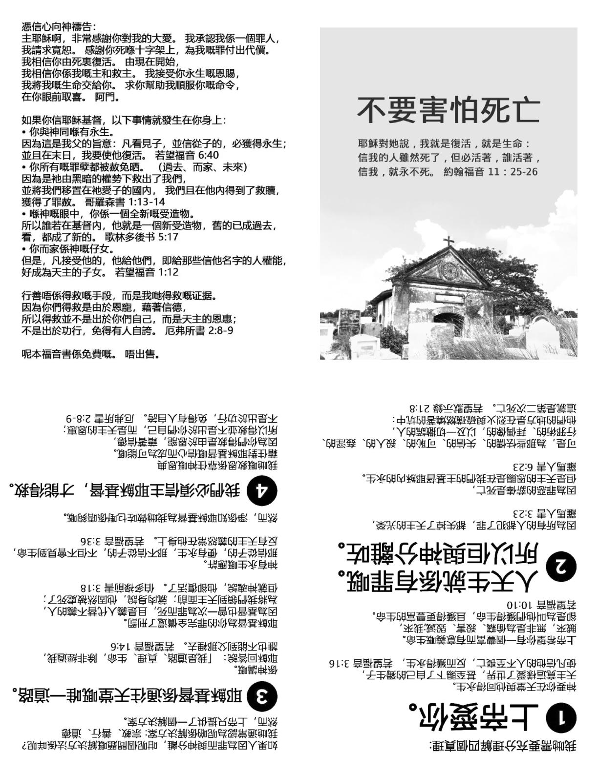 Printable Cantonese Traditional Gospel Tract - Do Not Fear Death