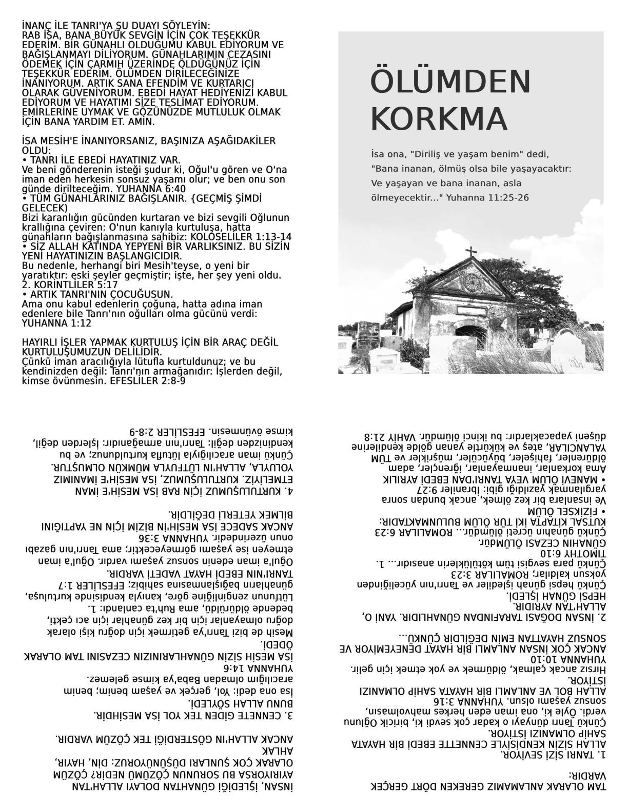 Printable Turkish Gospel Tract - Do Not Fear Death