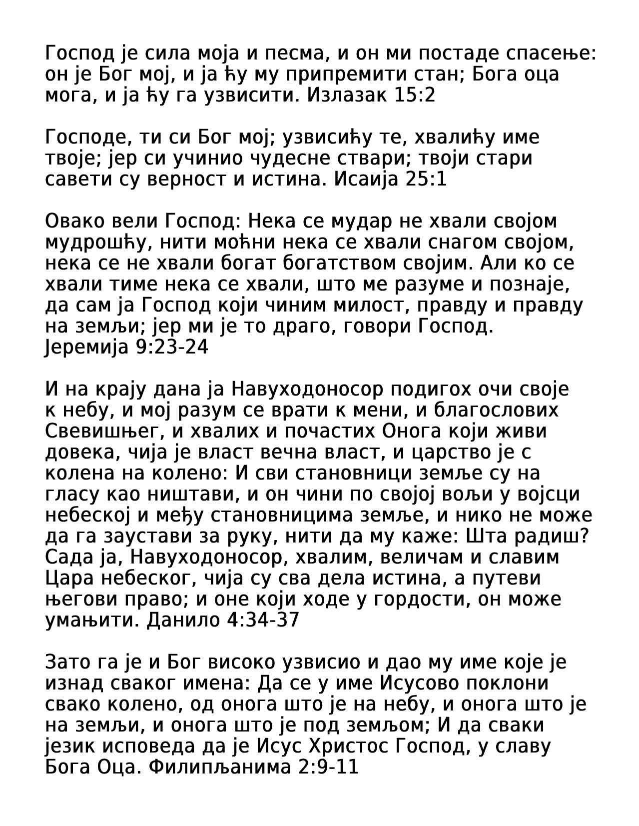 Serbian Cyrillic Praise Worship Thanksgiving Tract