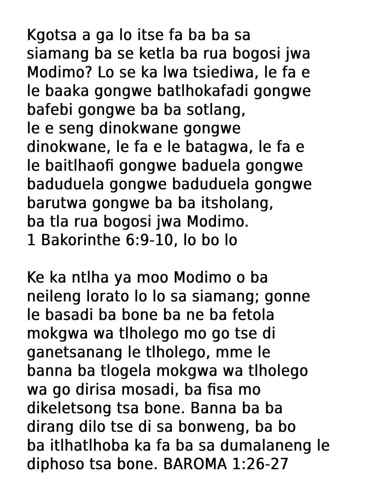 Setswana Tswana Anti-Homosexuality (LGBTQIA+) Warning Tract by Filipino Tracts and Literature Society Inc. - Issuu