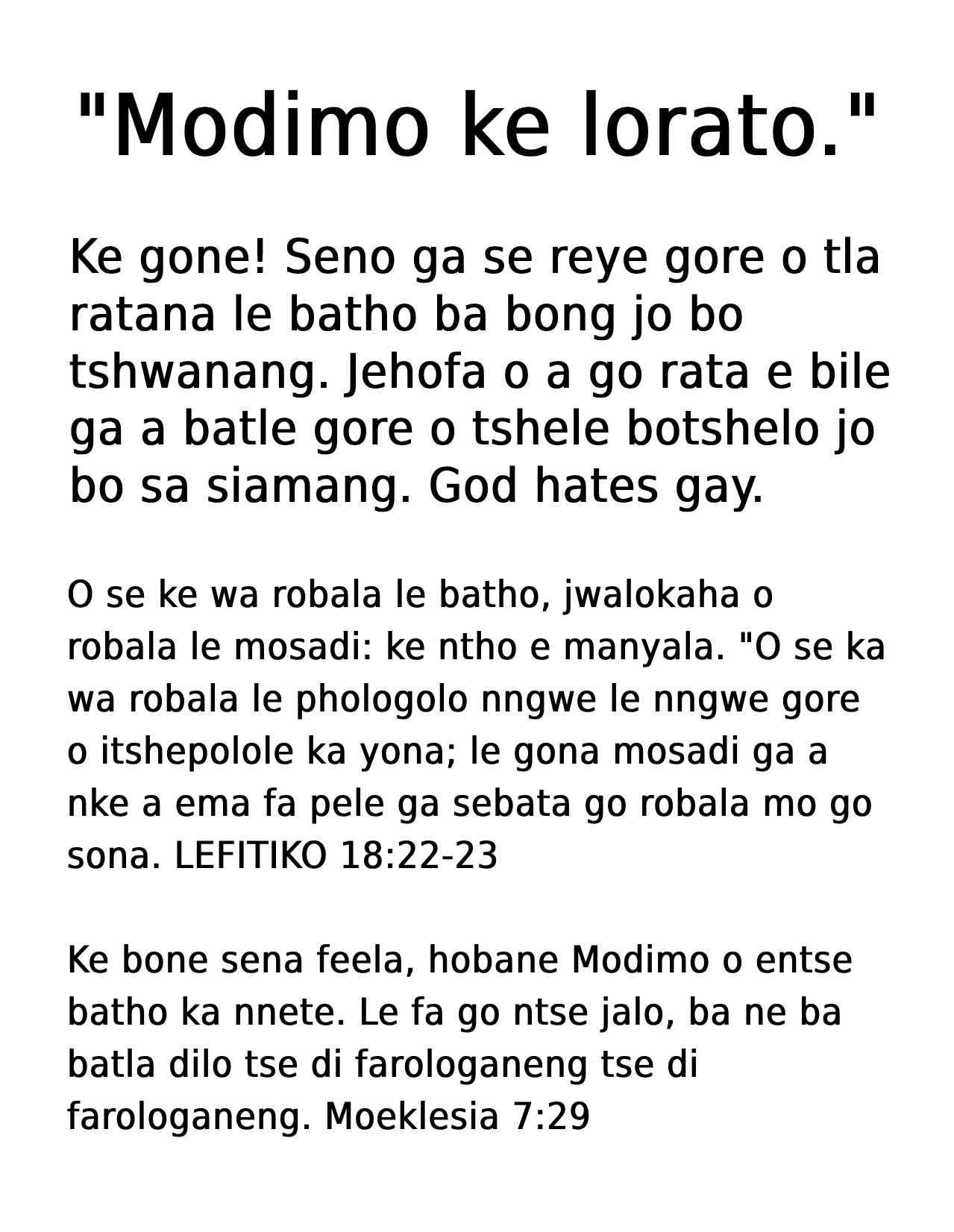 Setswana Tswana Anti-Homosexuality (LGBTQIA+) Warning Tract