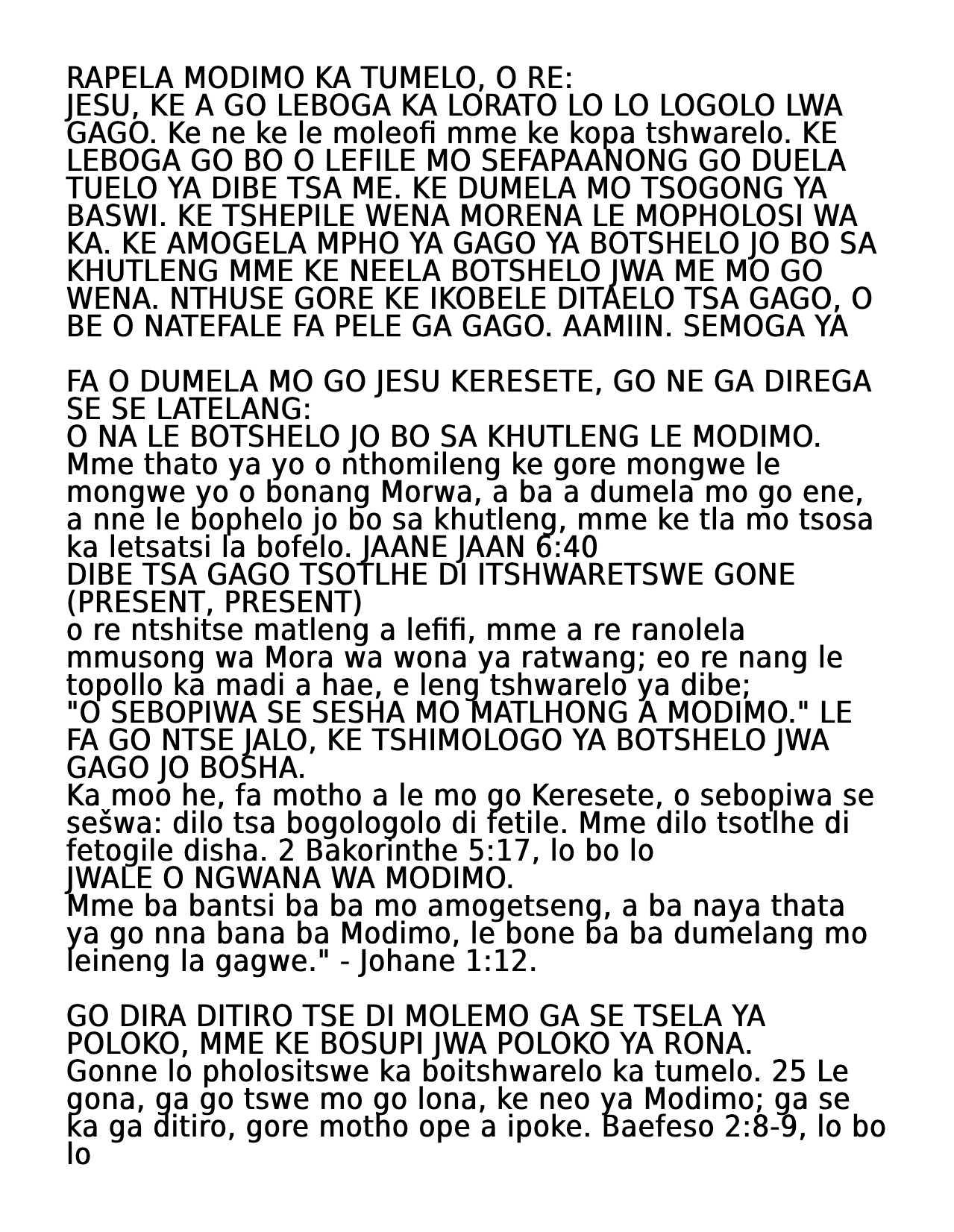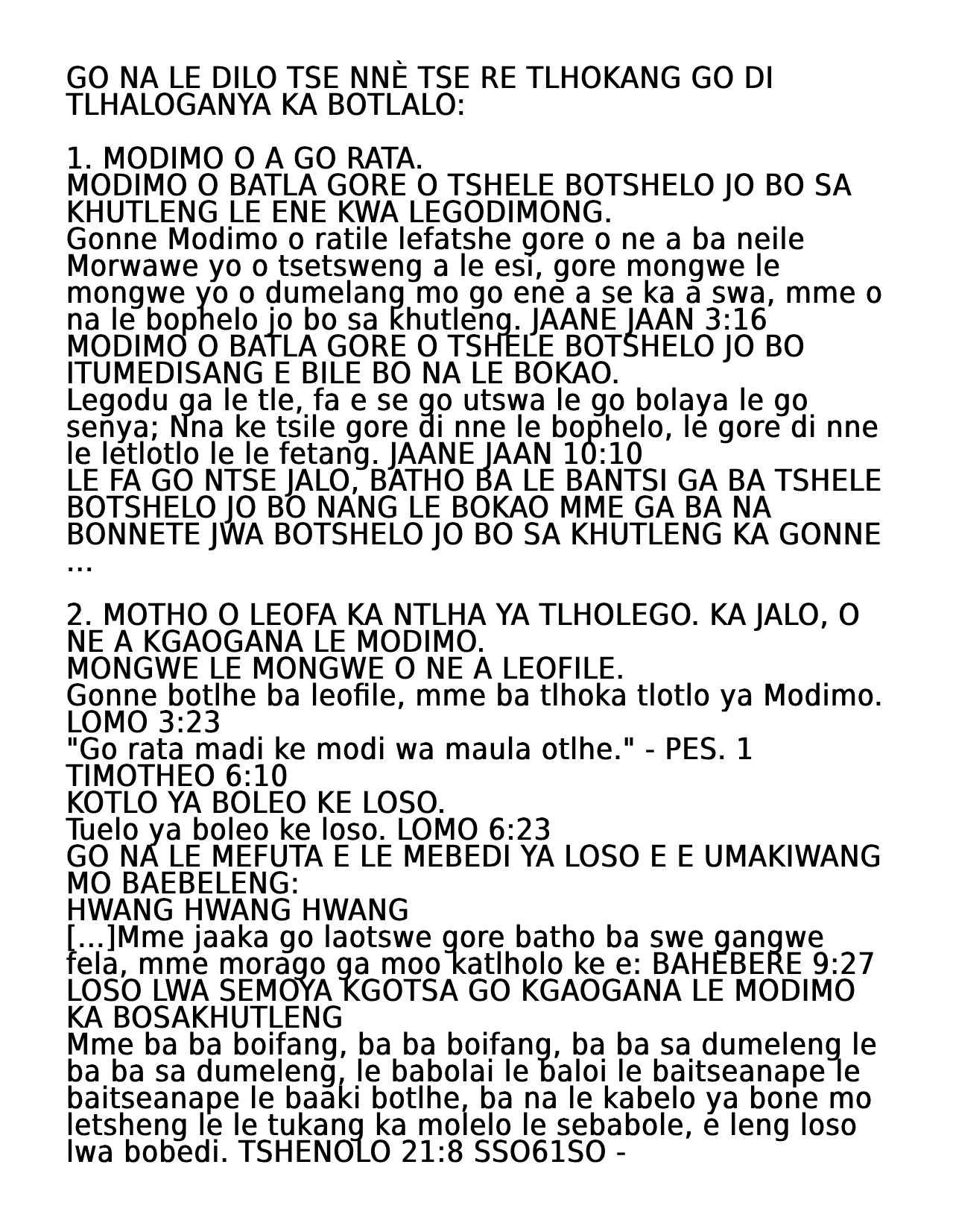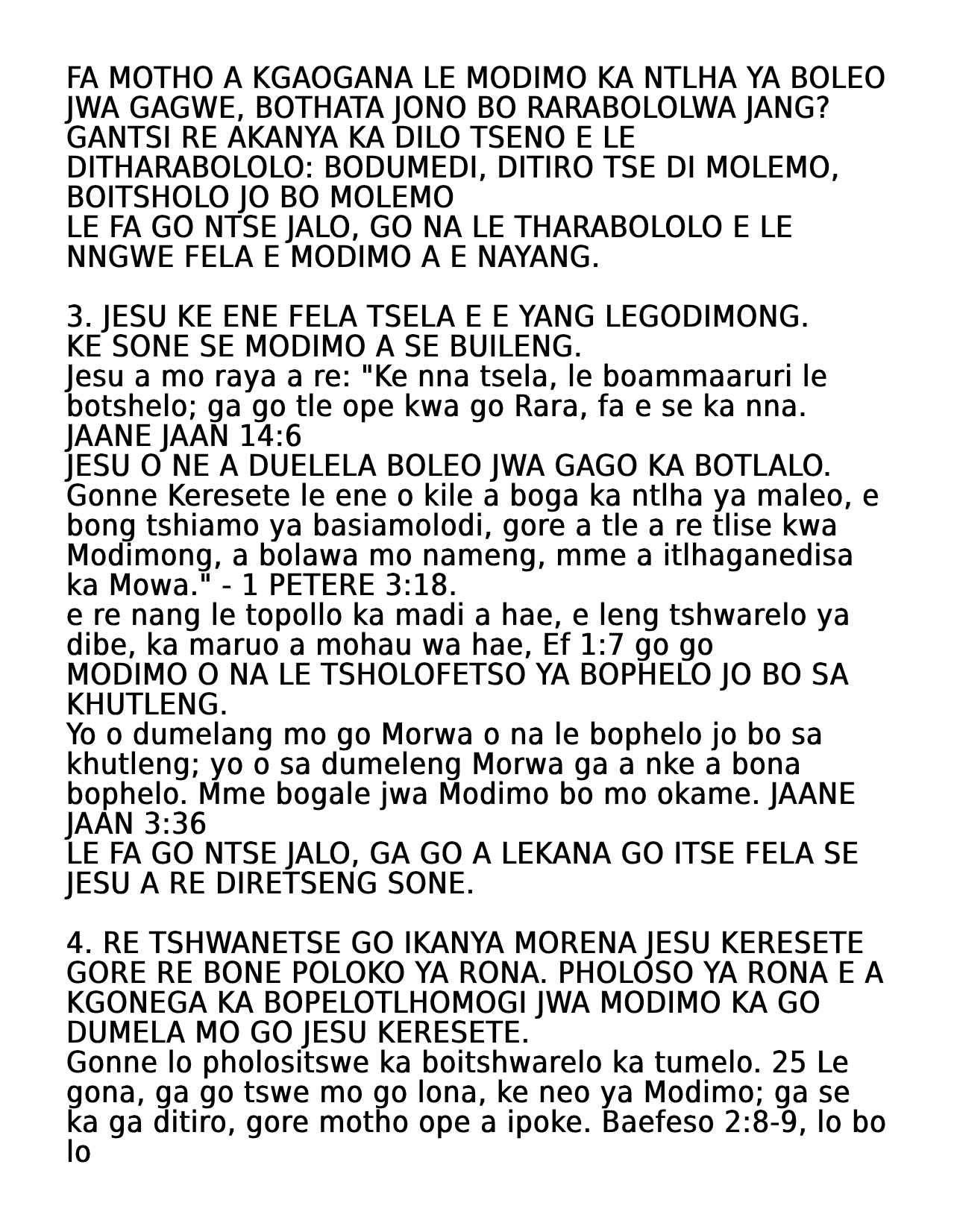 Setswana Tswana Gospel Tract - A Memorial to Mary of Bethany. by Filipino Tracts and Literature Society Inc. - Issuu