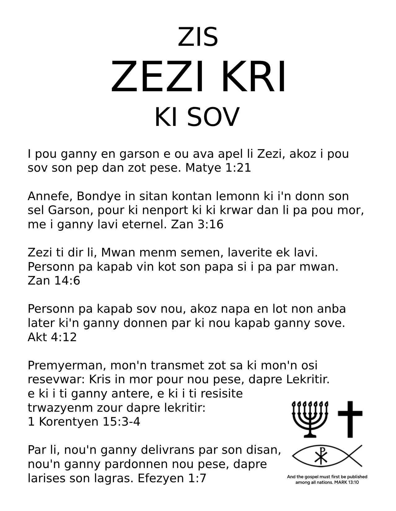 Seychellois Creole Gospel Tract - ONLY JESUS CHRIST SAVES