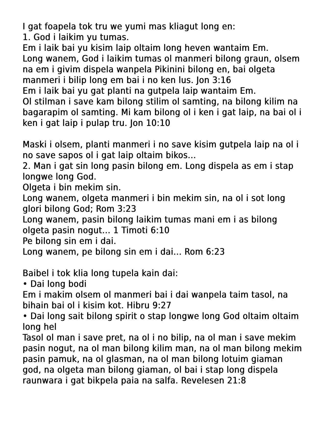 Tok Pisin Gospel Tract - ONLY JESUS CHRIST SAVES by Filipino Tracts and Literature Society Inc. - Issuu
