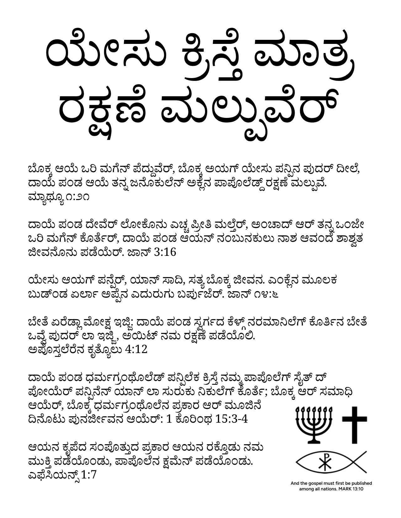 Tulu Gospel Tract - ONLY JESUS CHRIST SAVES