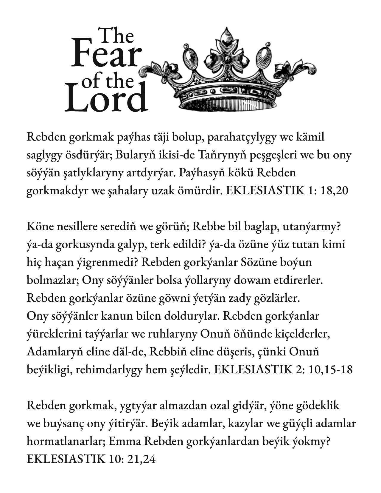 Turkmen The Fear of the LORD Tract