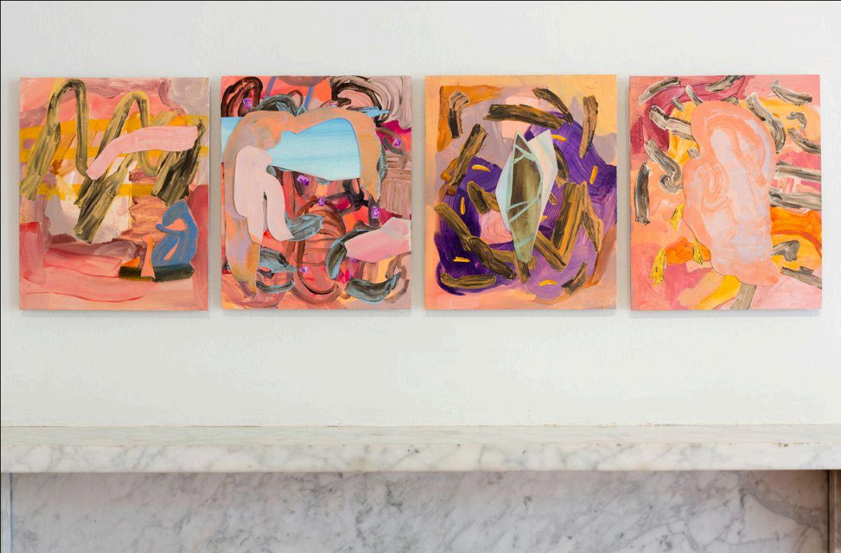 Former grantee Laura Skerlj, installation view of painting assemblages (2014), collaged oil on canvas and board, 25 x 31 cm each, Linden Centre for Contemporary Arts, Melbourne Image: David Marks