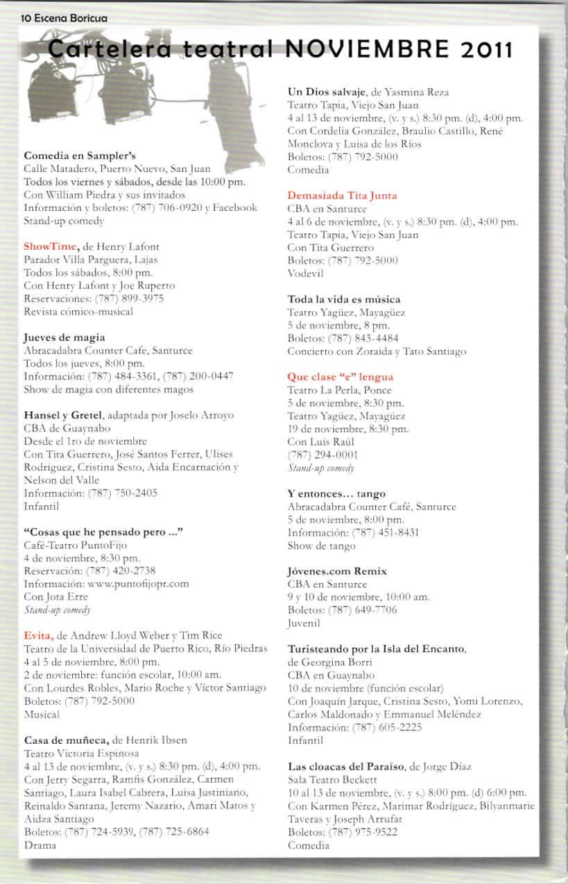 IATR: Revista ESCENA BORICUA. NOVIEMBRE 2011.