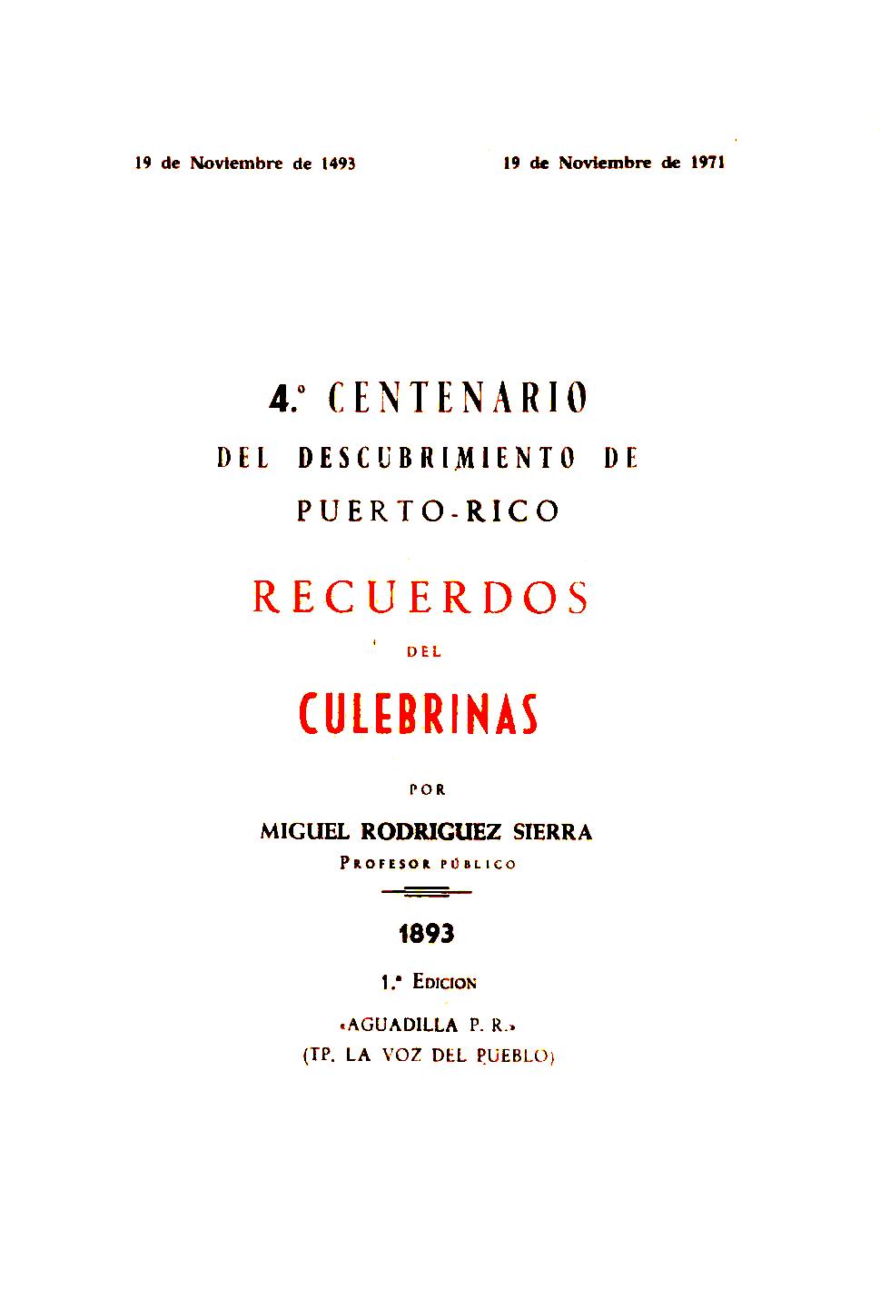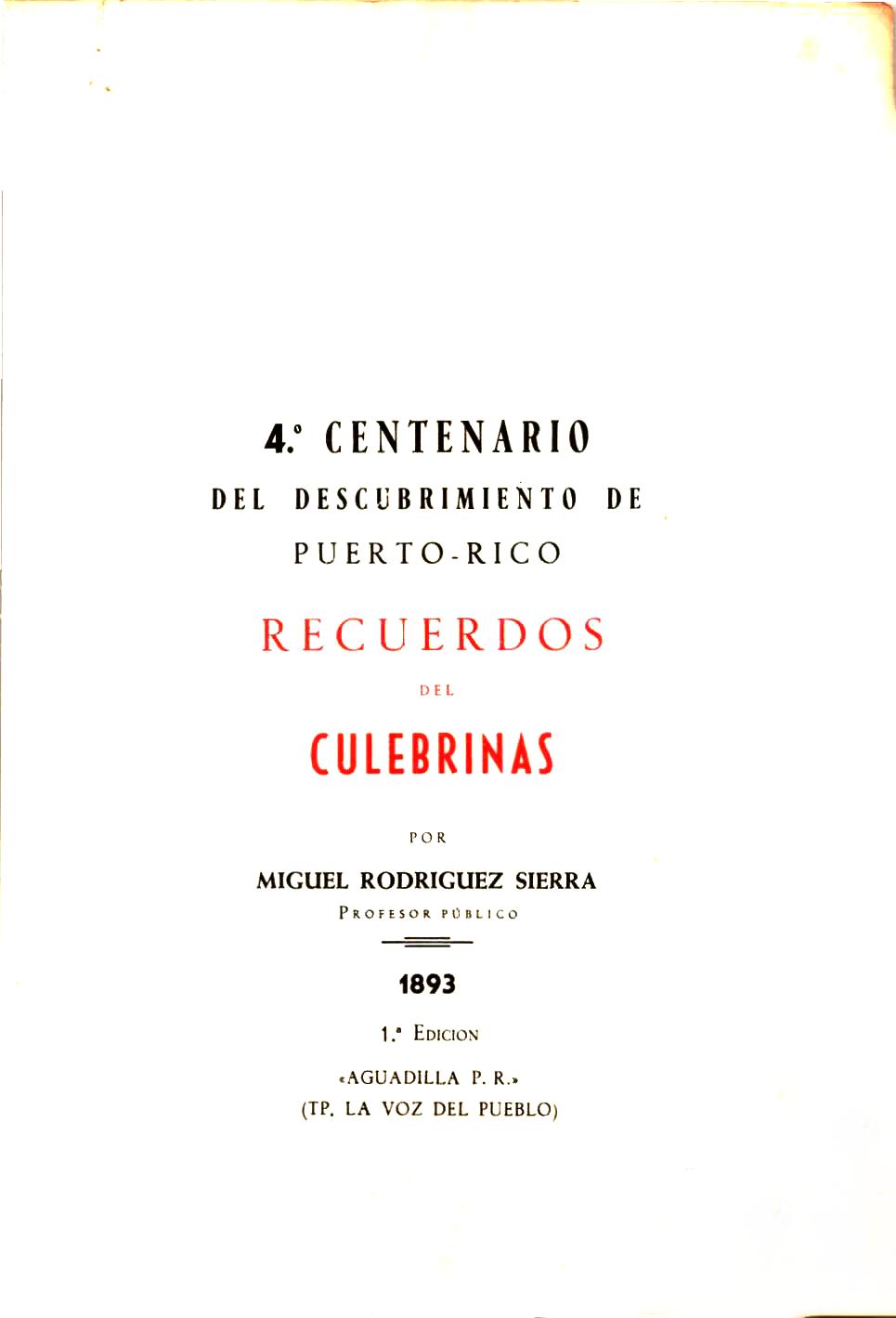 1893 4to CENTENARIO Descubrimiento de PR. RECUERDOS de Culebrinas-M Rodriguez Sierra by INSTITUTO ALEJANDRO TAPIA Y RIVERA - Issuu