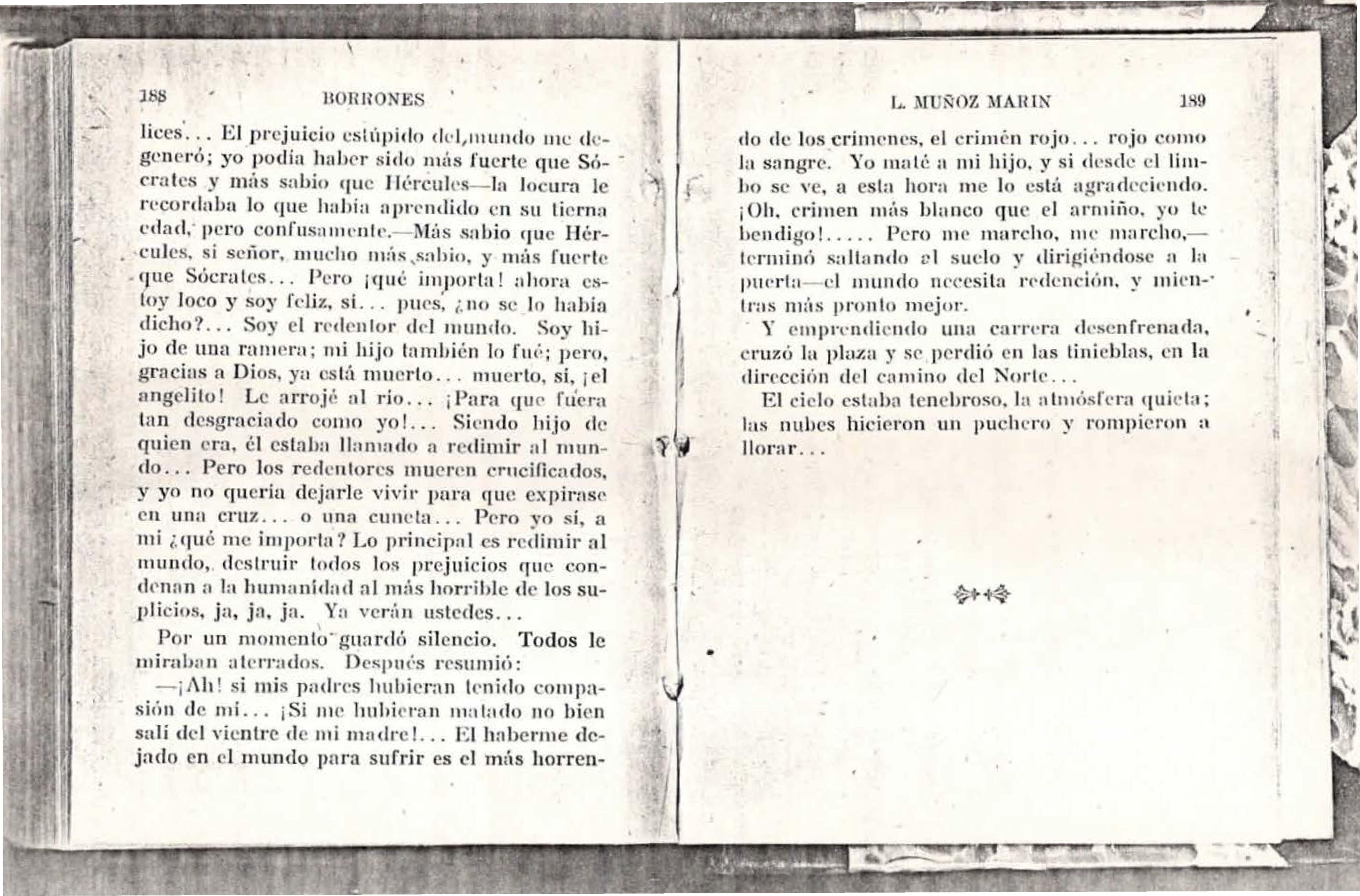 ja, ja ja, ¡ qu bu no· es estor loco 1... h ! pro m · lvidab.i: usl d no "ben ¡ qué van a sah •r. si no Lirn loco ! usl I s no saben ... o soy un hombr, un hombre igu:11 qu usl·d s, quien ab III jor p rqu 5loy 1 o. Yo· ienlo gn1111sde reir y u ·L·d s le llorar... m Jo . pli o: 'O Je he hccbo un gran fa or n un •r Jrnm:ino, y u l d ·, 1 mundo, ht:t p rdid una vi tima. . . Por e río, por eso est~1n usl •de tri l .- olp aba I p '·ho , In cara y r h on una risa LJ·iclnl .- o h mn lado a mi hijo ... ¿ al> n u l d p r qu ·? ... ¿ 1 ~o?.. .