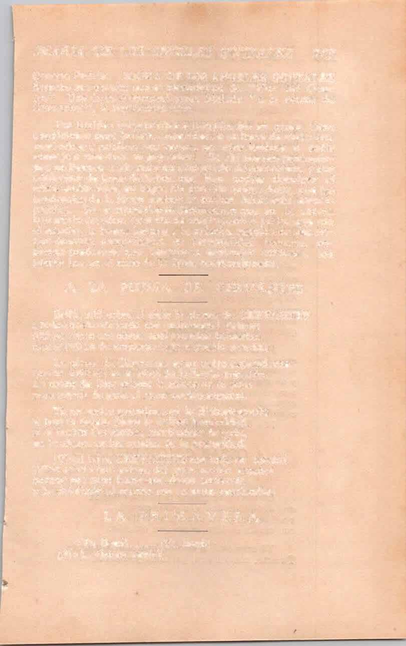 Si muchos de esos que se llaman patriotas y qce alardean a destiempo de un a:.nor arbitrario a la pobre tierra que los vió n11cer; si alguno de esos que han patentizado el patriotismo para hacer una induetria de lo que es una religión ciudadana hubiesen intentado siquiera lo que usted aborda en su libro. que es una gallarda ex1tltaci6n y una gráfica comprobación de la vieja cultura y de la fuerte e�pipiritualidadde este pueblo digno de mejores porti.voces de los que tiene ahora en el campo político, otra sería la suerte e.le Puerto Rico y muy otros los respetos que se nos guard¡¡sen por qaienes en su fracasado empe�o de colonizadores, sin un contenido espiritual superior aI quetriunfa en la obra de nuestros poetas, han intentadCl, sin embargCl, echsr el cimiento de nuestracultura eobre la arena de aluvión de éstos veintisiete años perturbadore!'.