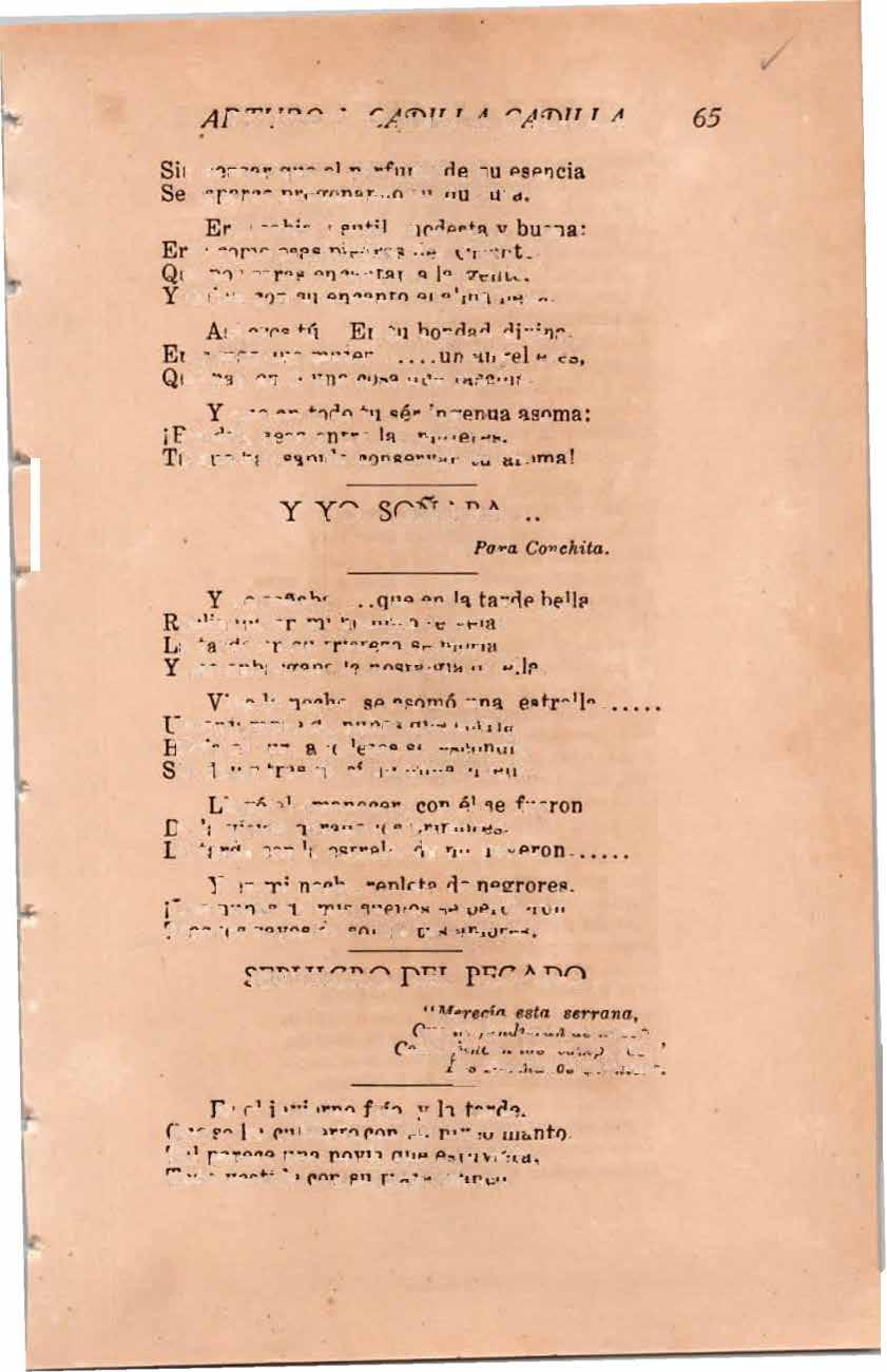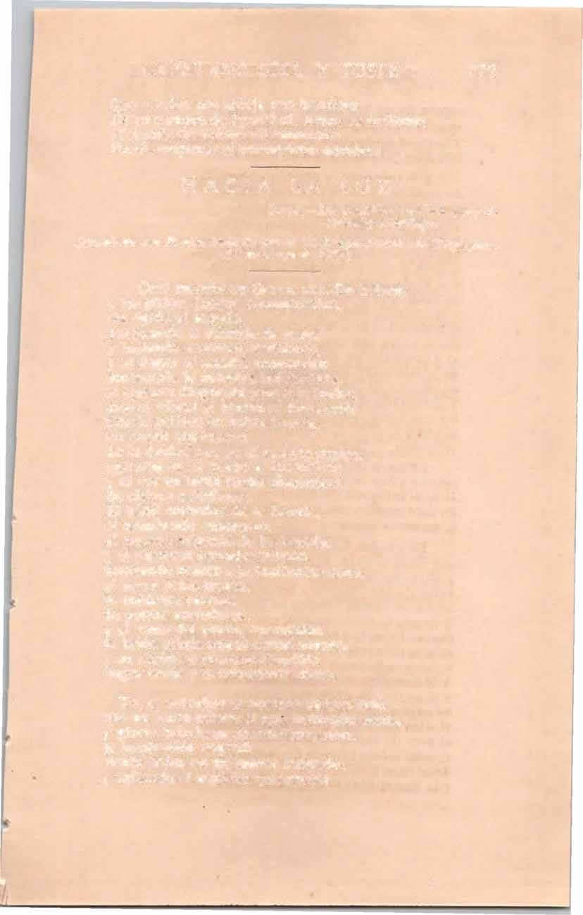 Asi su libro; así. su empeño de revivir la vieja cultora, el arte. el bello arte que es una floración de esa cultura, de esa cultura que quieren negarnos en arbitraria sugerencia las estadísticas del departamento de Instrucción.