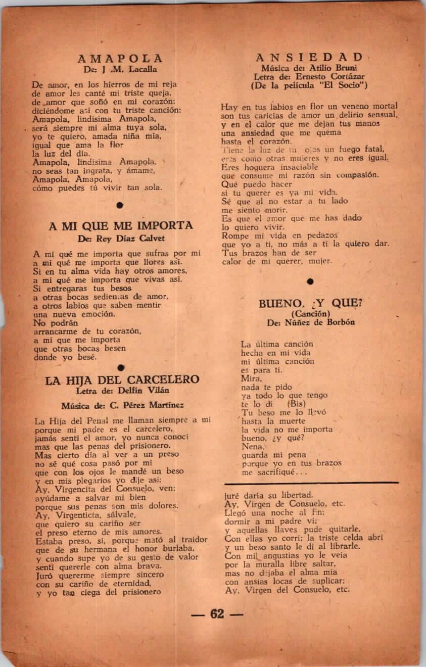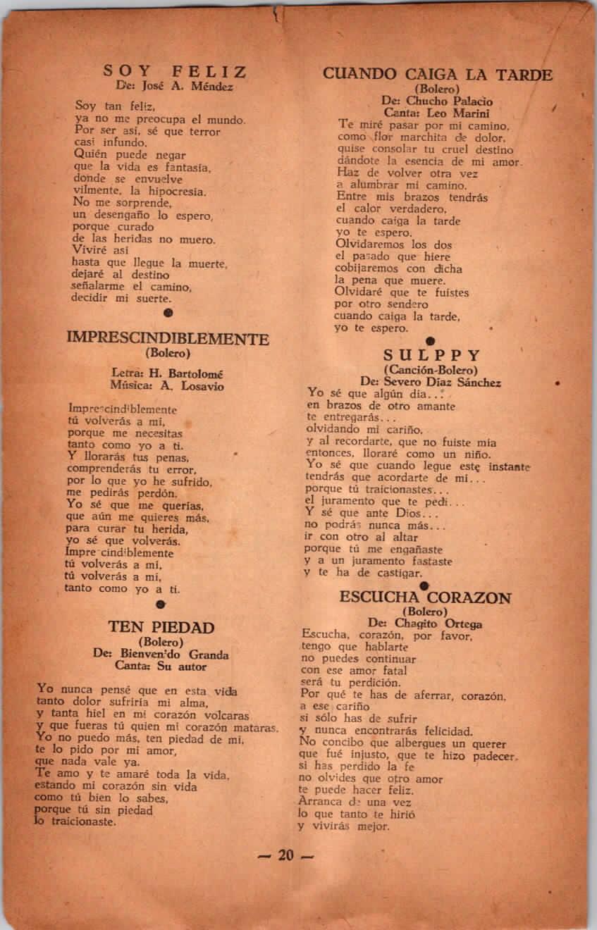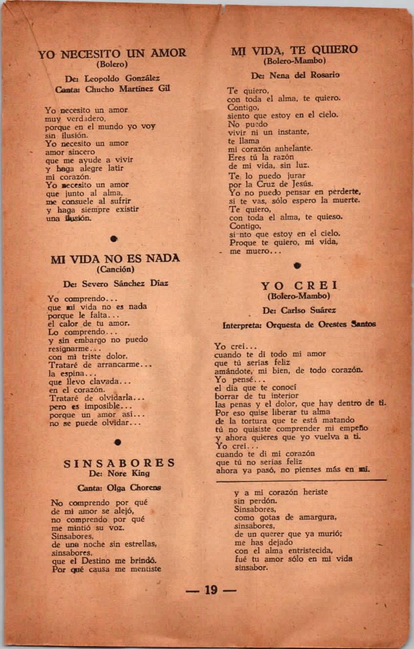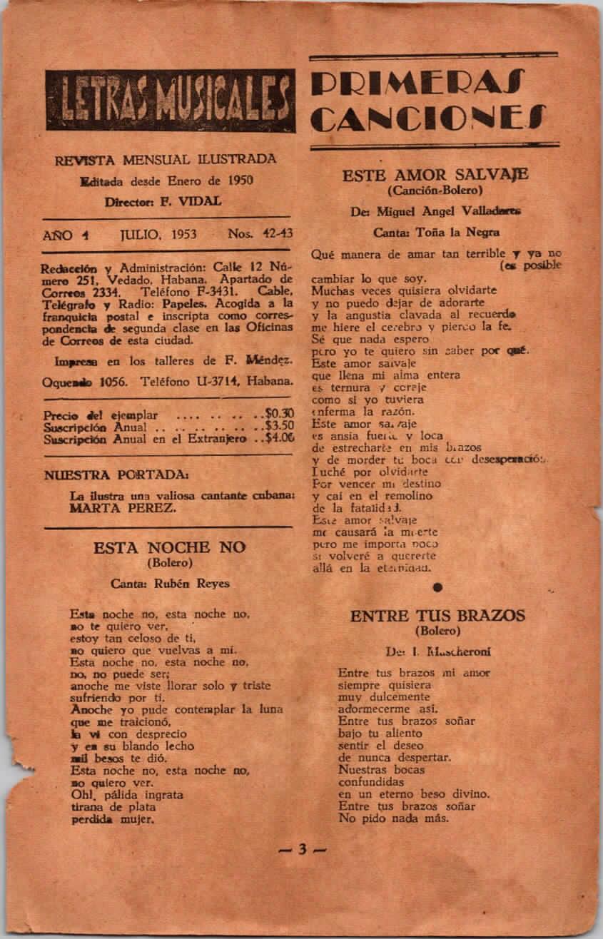 IATR:1953 LETRAS MUSICALES (CANCIONERO-CUBA) JULIO -42-43