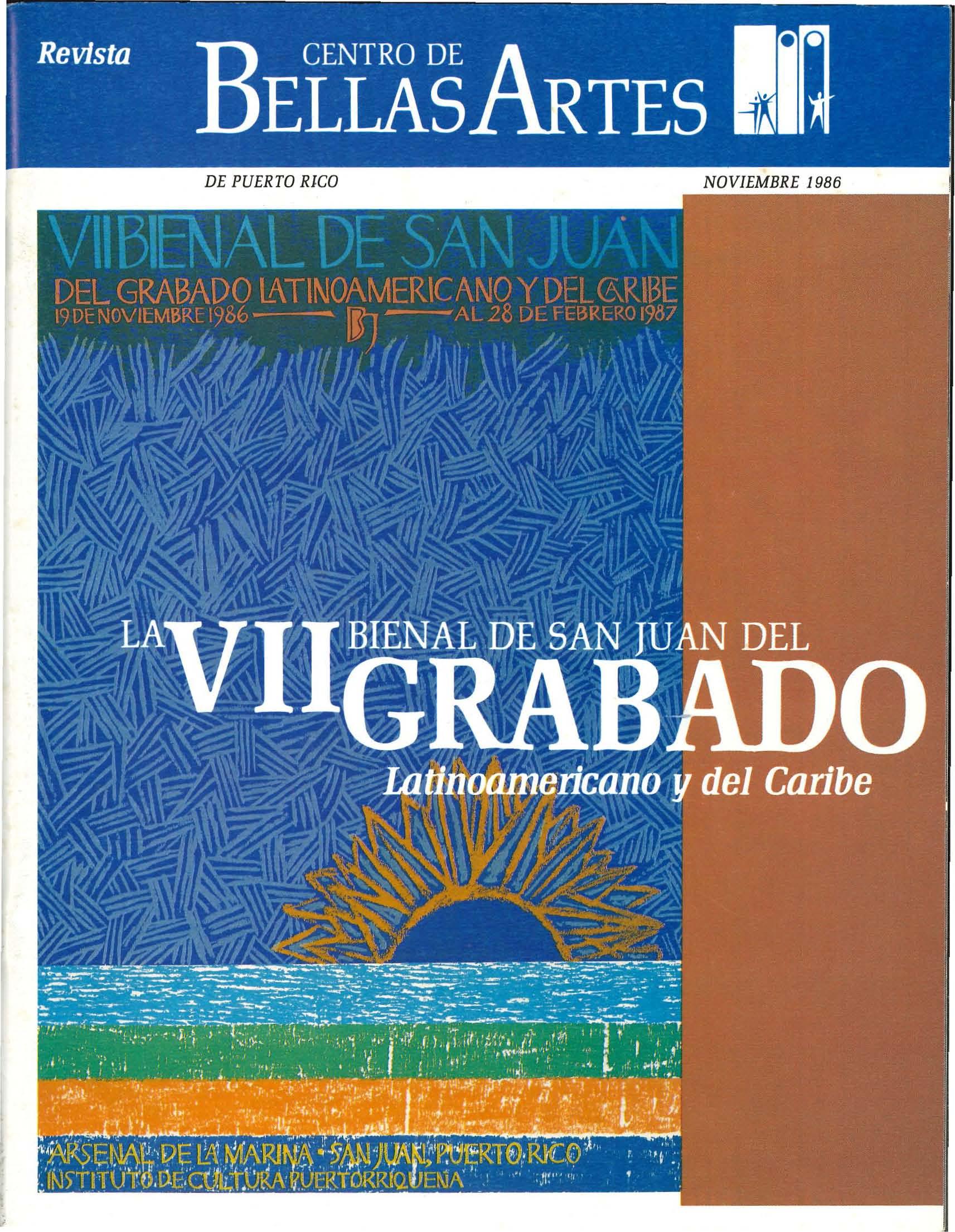 EI Dia del Descubrimiento de Puerto Rico, miercoles 19 de noviembre de 1986, a las 8 de la noche, sera la apertura oficial de la VII Bienal de San Juan del Grabado Latinoamericano lJ del Caribe, en el Arsenal de la Puntilla en San Juan, bajo los auspicios del Instituto de Cultura Puertorriqueiia. La exposicion prin cipal se ra inaugurada por el Gobernador de Puerto Rico , Hon. Rafael Hernandez Colon.