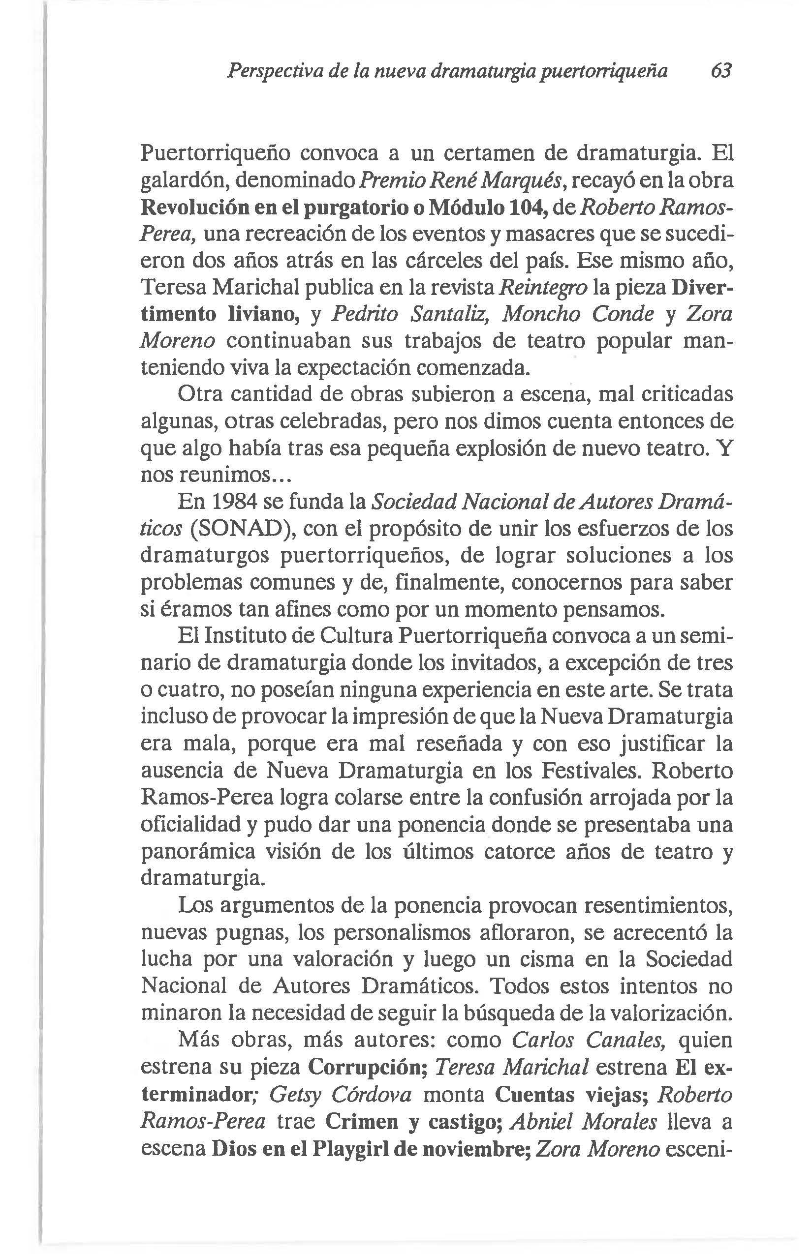 Agradezco sinceramente las gestiones hechas por el señor Juan González, coordinador de este seminario, y al señor Raúl Carbonen, Director de la Oficina de Fomento Teatral del Instituto de Cultura. El acceder a mi reclamo por la valorización de la nueva dramaturgia es un indicio de la buena voluntad de su interés por el teatro puertorriqueño.
