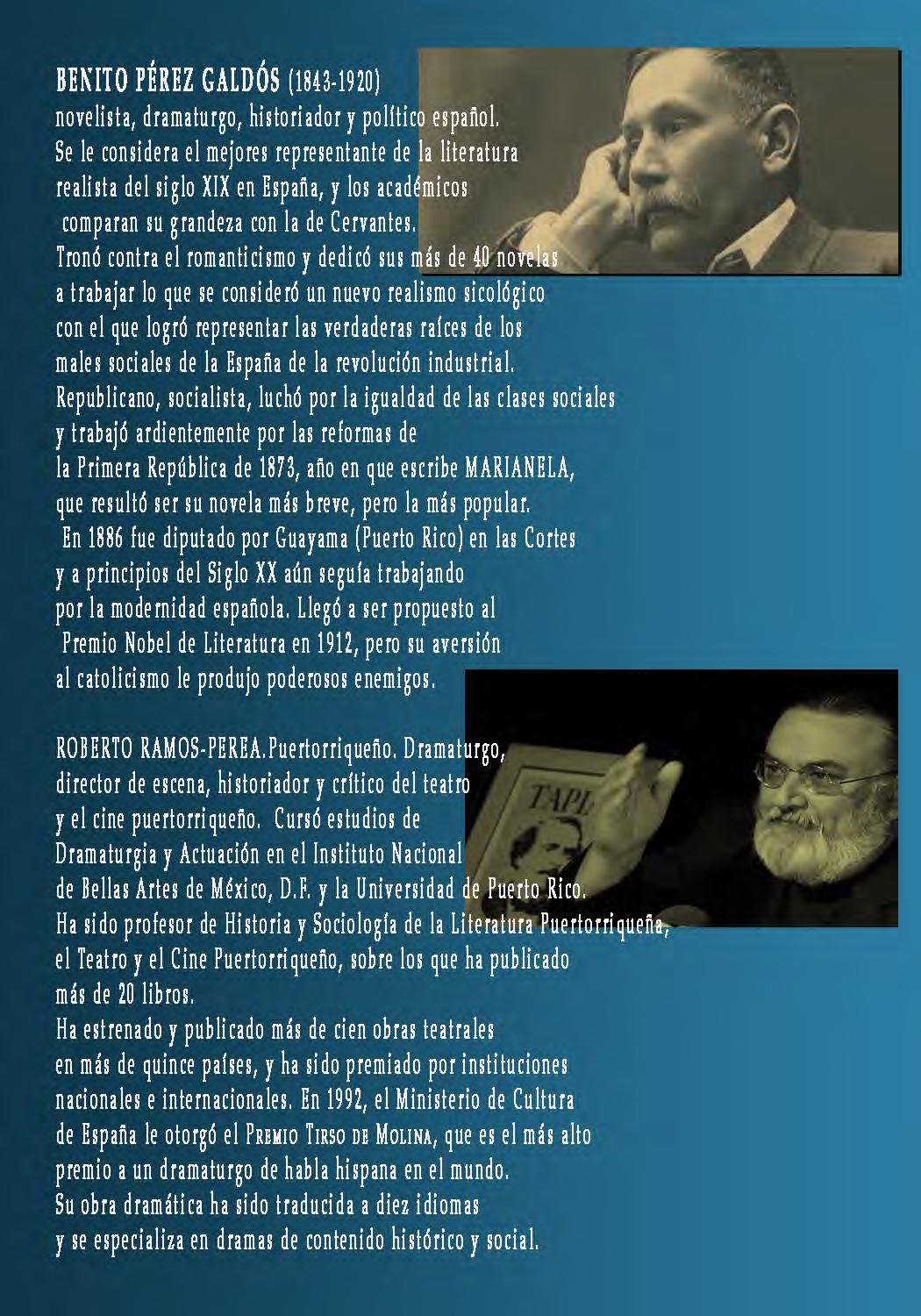 IATR: PROGRAMA DE MANO de la obra MARIANELA, sobre la novela de Benito Pérez Galdós, Adaptada y Dirigida por Roberto Ramos-Perea para la Compañía Nacional de Teatro del Instituto Alejandro Tapia y Rivera. Estrenada el 9 de septiembre de 2022 en la Sala Experimental del Centro de Bellas Artes de Santurce, Puerto Rico.