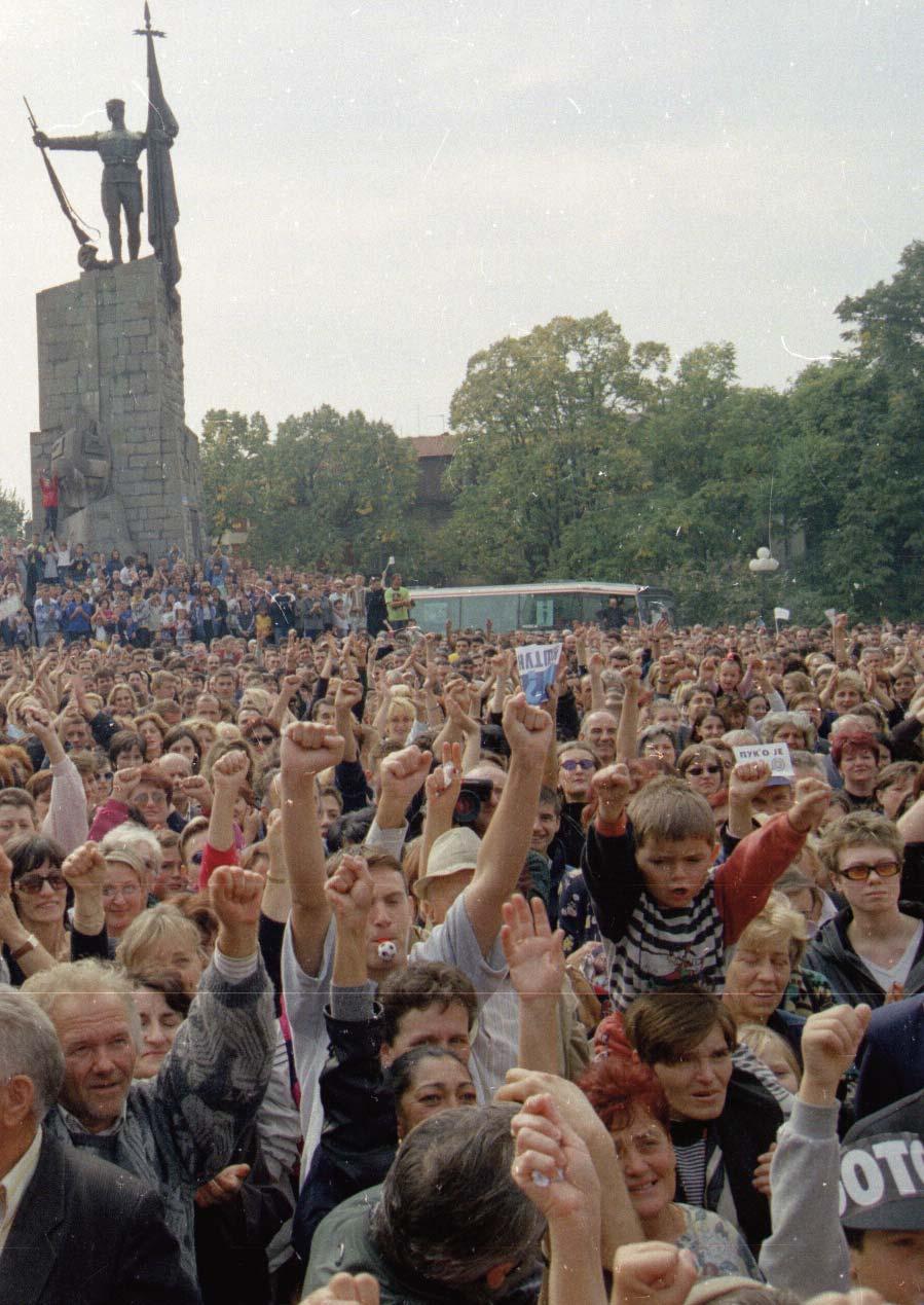 довање оптужујући југословенске и српске власти да плански врше етничко чишћење косовских Албанаца. Напади су трајали до јуна исте године када је у Куманову потписан војно-технички споразум о повлачењу југословенске војске и полиције са подручја јужне српске покрајине. Октобарски догађаји 2000. године представљају кулминацију незадовољства великог броја грађана из претходног периода. У историји ће бити записано да је годину дана раније, на захтев министра информисања Александра Вучића, усвојен Закон о јавном информисању, запамћен по томе што је увео високе новчане казне за новинаре чије се писање косило са политиком режима Слободана Милошевића. Након тога дошло је до гашења редакција независних медија, а 11. априла 1999. убијен је један од оснивача и уредника независних листова Славко Ћурувија. Опозициона коалиција Савез за промене организатор је неколико демонстрација против режима Слободана Милошевића,почевши од августа 1999. године, а у октобру је извршен покушај атентата на опозиционог политичара Вука Драшковића у коме су животе изгубиле четири особе. Почетком 2000. формирана је коалиција опозиционих странака названа демократска опозиција Србије,а након што је на њега у јуну још једном извршен покушај убиства Драшковић је напустио ДОС. Након што се уочи савезних избора 2000. Иван Стамболић