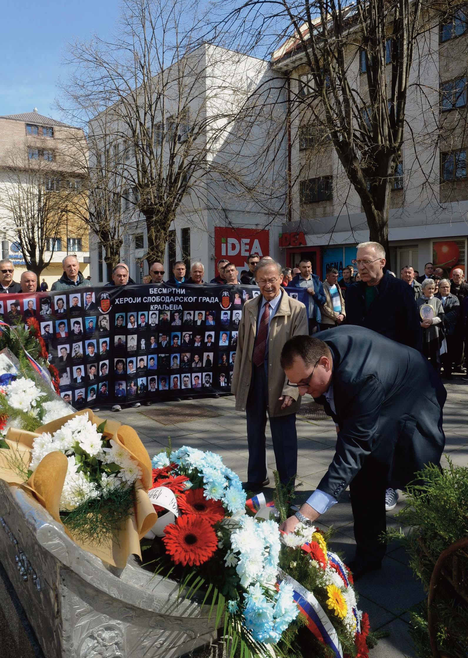 Споменик са именима страдалих Краљевчана на Тргу Јована Сарића је место где сваког 24. марта венце и цвеће полажу представници локалне самоуправе, Удружења породица палих бораца ратова од 1990. до 1999. године, Удружења учесника ратова 1991-1999, Удружења ратних војних инвалида, Војске Србије, Министарства уну-