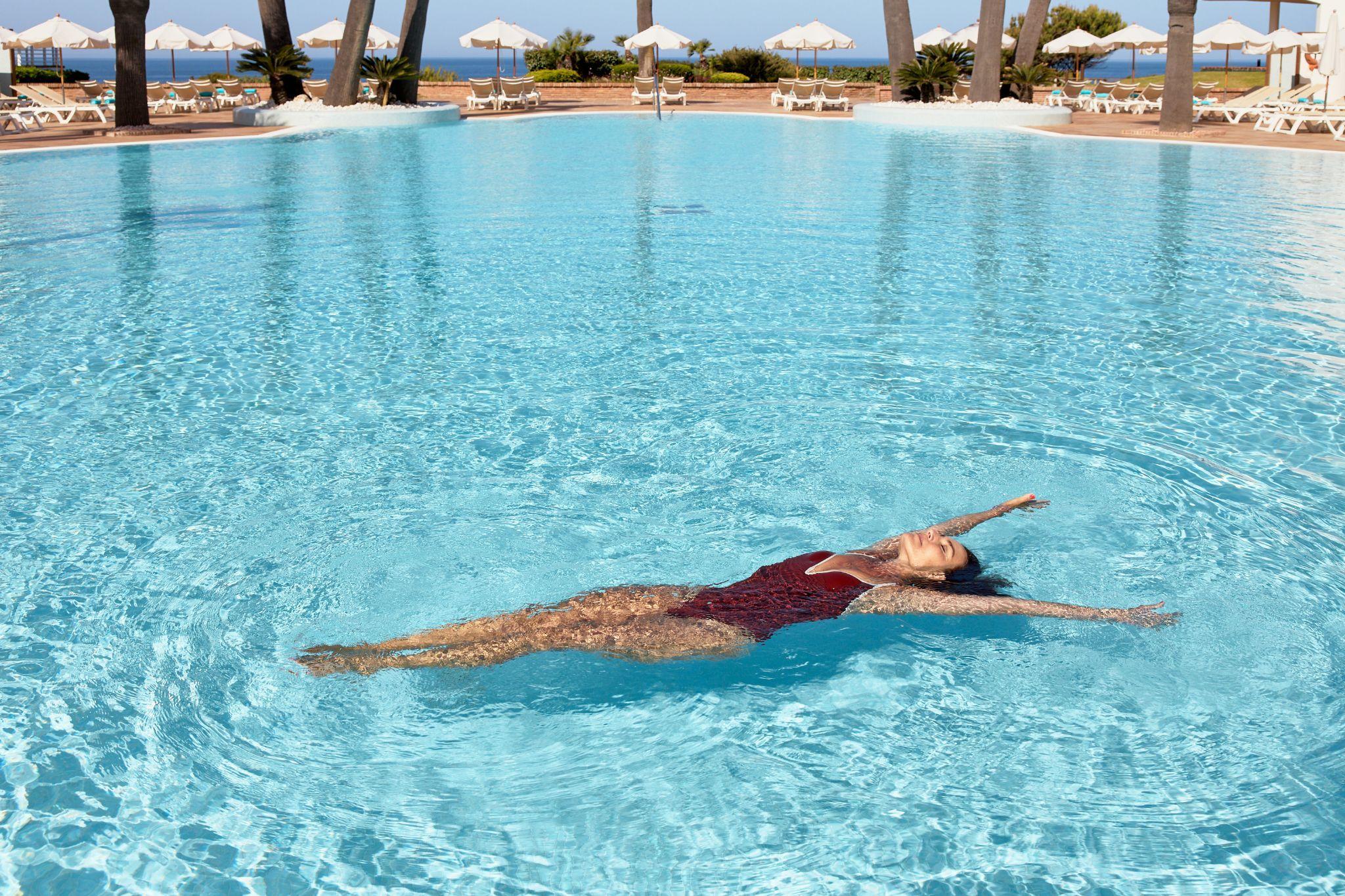 - Guestscanspendhoursrelaxingandenjoyingthe Adriaticfromtheseasideplatformatthehotel’s beach.