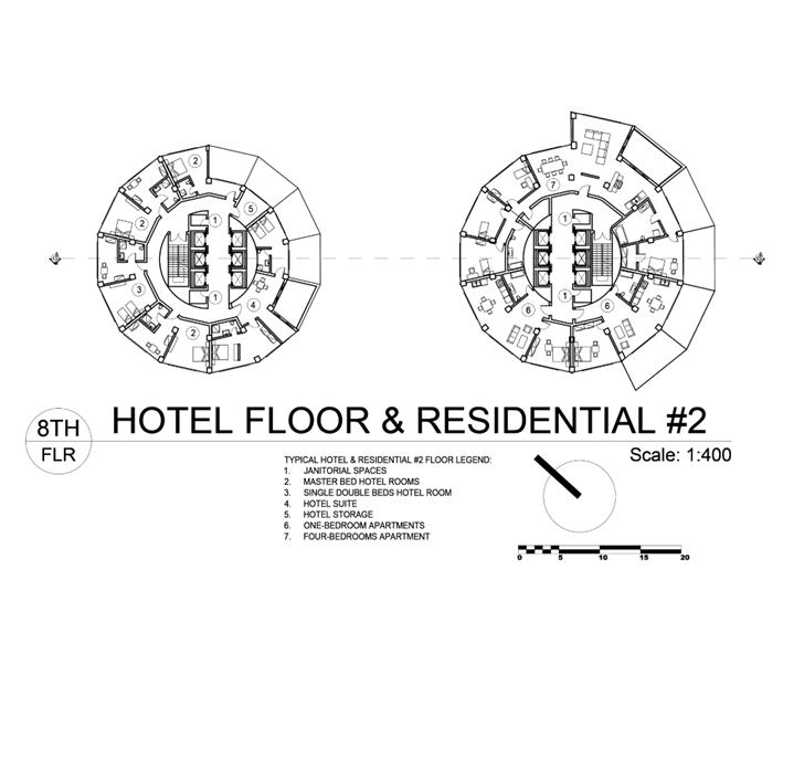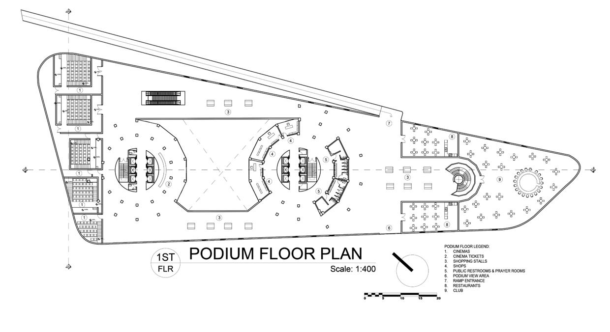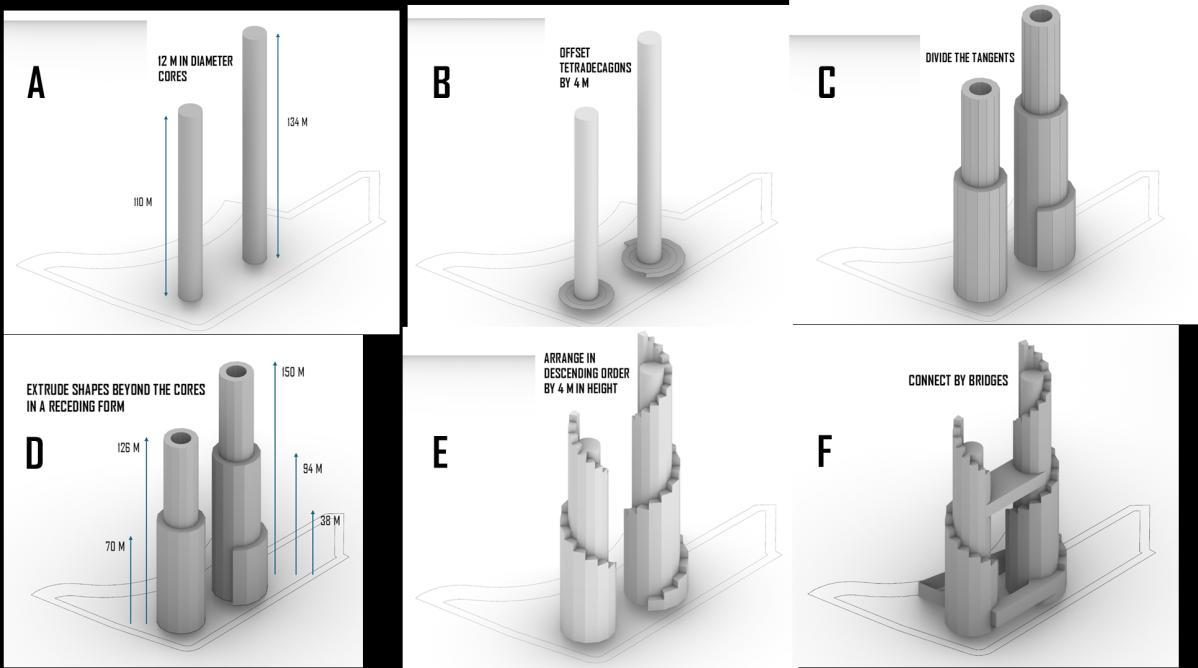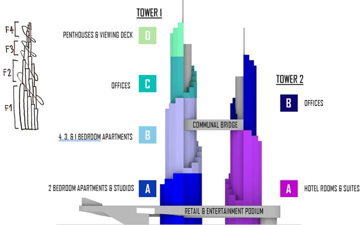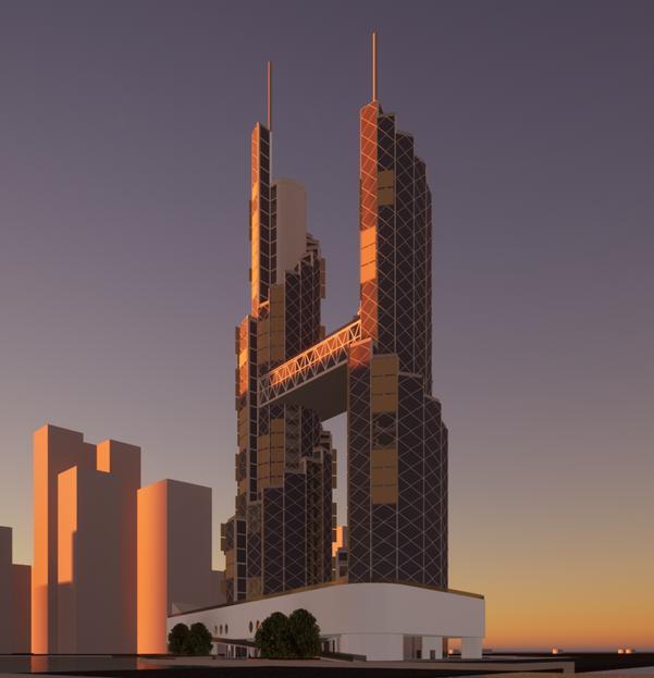 Abraj Al-Halazoon is an Arabic term for ‘The Spiral Towers’ due to its’ coiled spiral seashell-like design. This structure endeavors to take an advantage of the site’s nearby beach, lake, and park by creating a potential of attracting visitors with several activities to be absorbed into visiting the area; creating a new landmark for Abu Dhabi’s corniche.