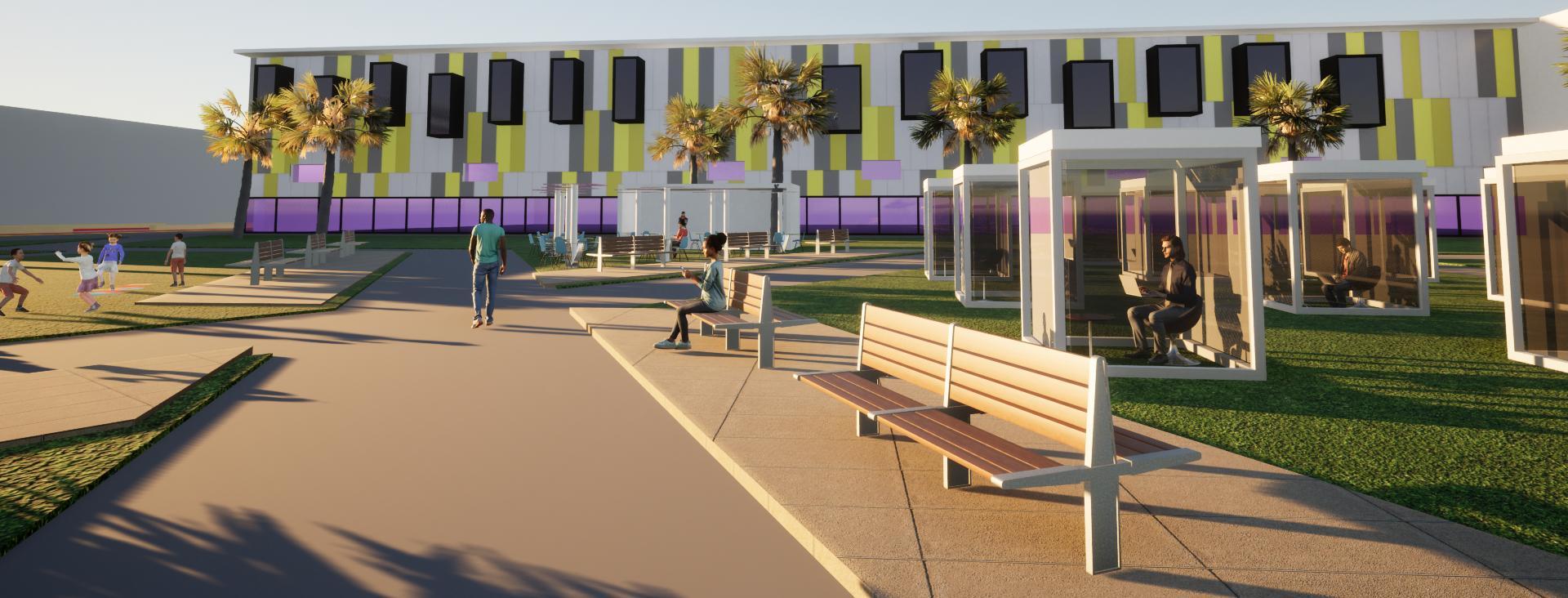 Nadia is the Arabic translation to the term ‘Delicate’ and the Russian translation to the term ‘Hope’, which both emphasize the block’s delicate design of its fragmented buildings with their landscape and the project aims to provide vistiors coming for multi-activities, shopping, and educational purposes to find themselves in a hopeful and inviting environment.
