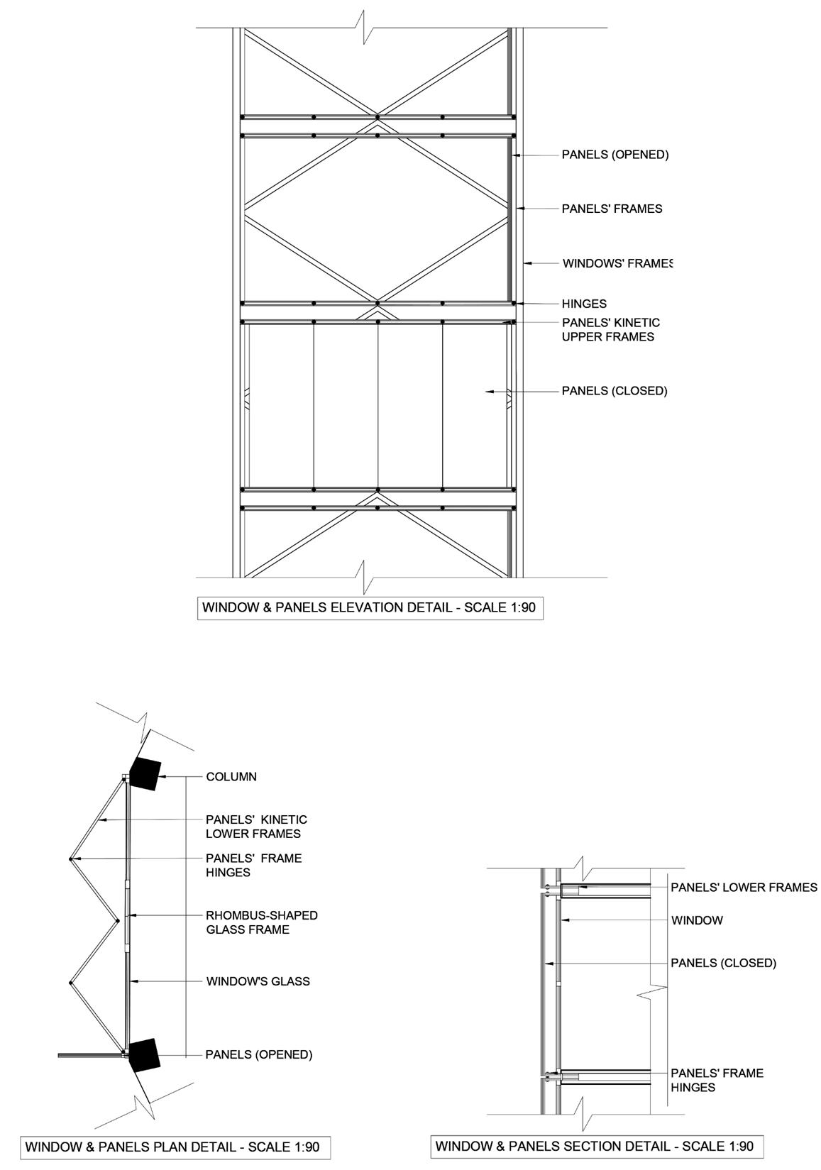 To control the hot climate in Abu Dhabi, kinetic shading panels are installed that are fully controlled by the occupants of the building which work like an accordion, either they need sunlight in the morning or to keep the indoor environment cooler. This idea decreases the usage of air conditioners while also giving the essential views from the towers overlooking the corniche of Abu Dhabi