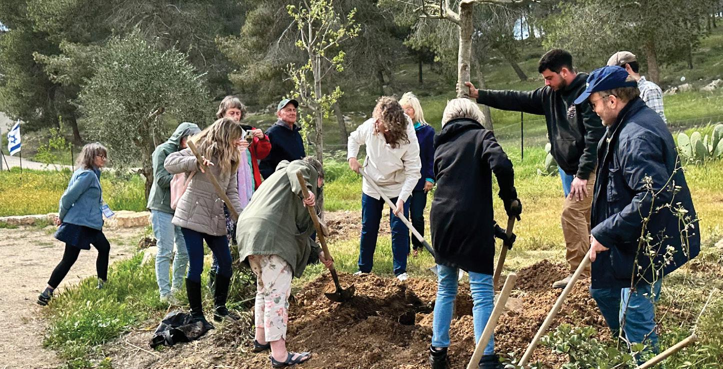ICEJ solidarity mission delegation volunteering at the the Rimon Farm trauma therapy center.