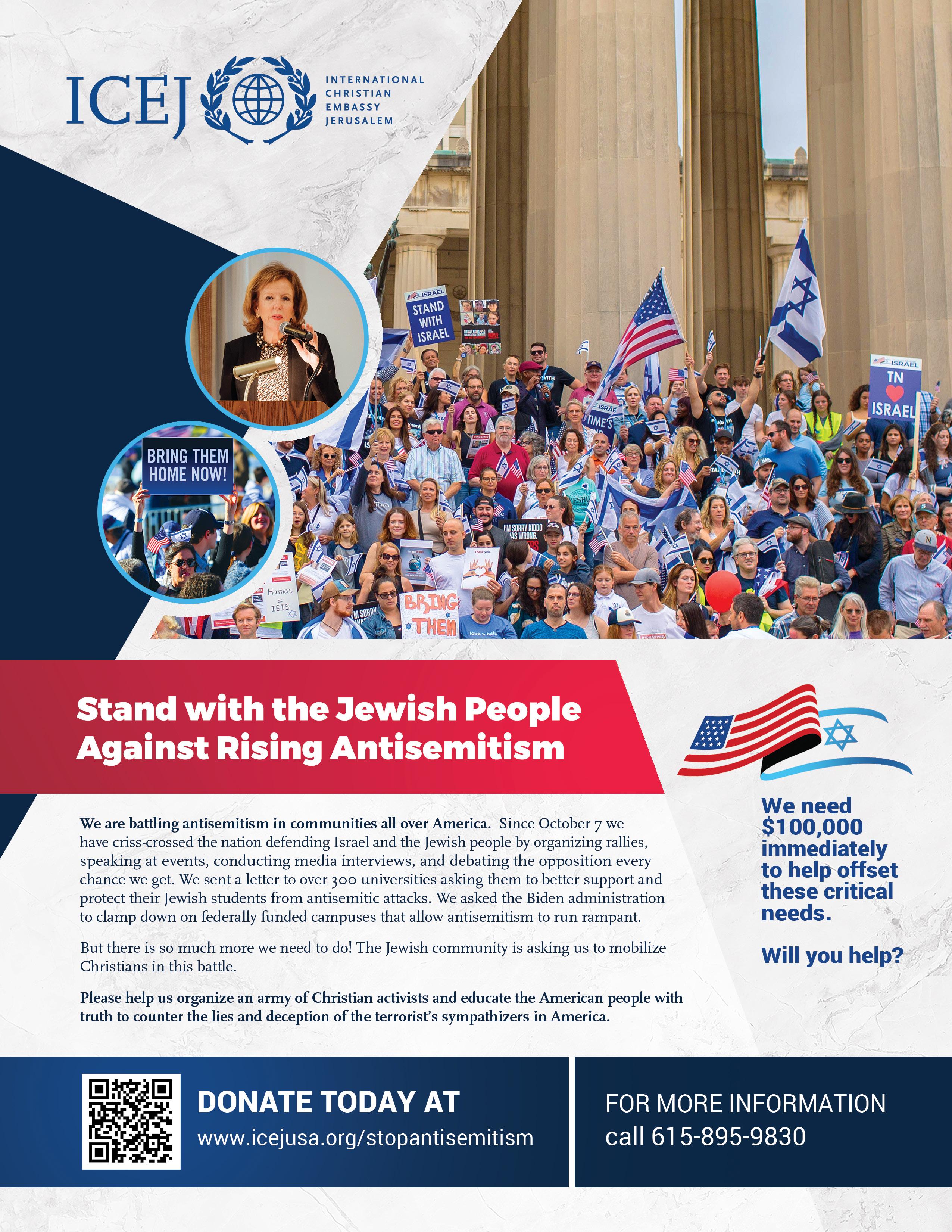 Word From Jerusalem is published by the International Christian Embassy Jerusalem. Reproduction in whole or in part without written permission is prohibited. Word From Jerusalem has no subscription price and is supported through contributions worldwide. The ICEJ USA Branch is a 501(c)(3) non-profit organization with offices in Tennessee, Florida, and Washington, DC. All gifts to this ministry are tax-deductible according to United States law.