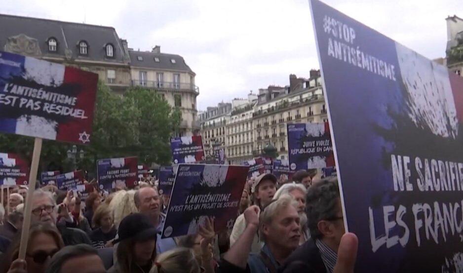 Protest in Paris against antisemitism after the recent rape of a 12-year-old Jewish girl (screen capture from NBC News)
