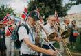 Peregrinos de la Fiesta, portando sus banderas nacionales, acompañan el recorrido desde el parque Sacher en Jerusalén durante la emblemática Marcha de Jerusalén en la Fiesta de los Tabernáculos 2025.
