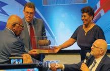 El Rev. Malcom Hedding recibe el Premio Nehemías en la Fiesta de los Tabernáculos de este año.