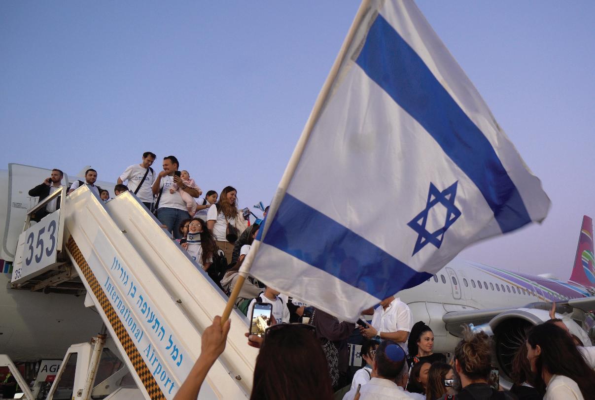 COVER PHOTO: New immigrants from France arrive to a warm welcome on the tarmac at Ben Gurion Airport. (Credit: ICEJ)