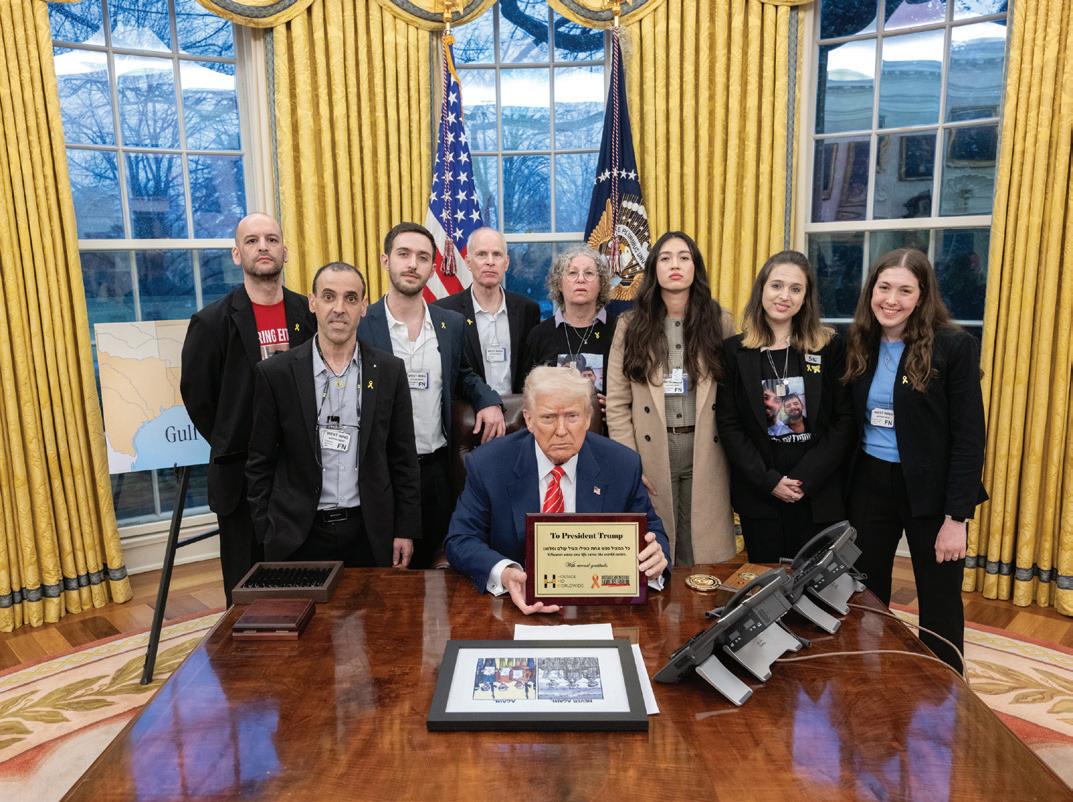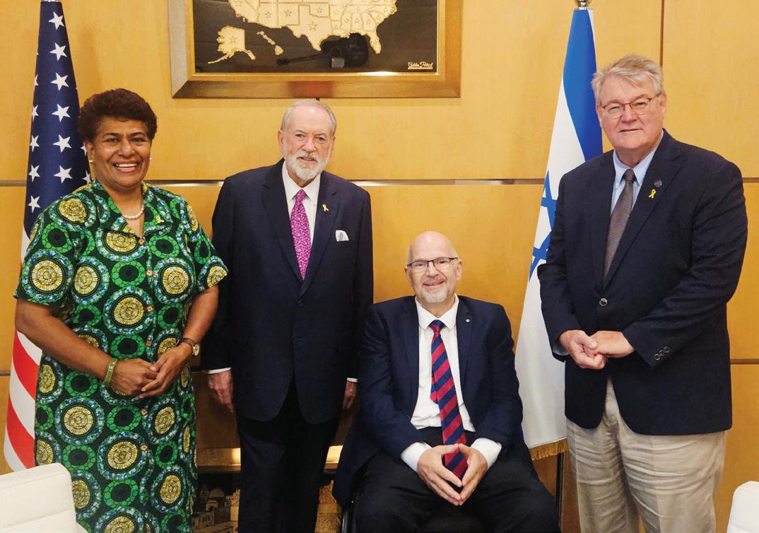 The delegation also visited the home of Avshalom Haran, who died defending his family when terrorists attacked with flamethrowers. His wife and daughters survived in the safe room, but his house was left in ruins.