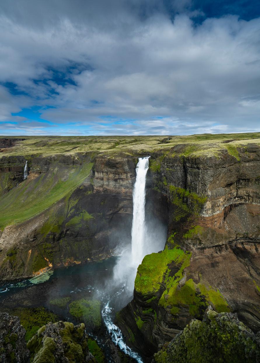 A little further along Rte. 32 is the gravel road Rte. 327 to Stöng, where the excavated ruins of a 12th century Viking-age farmhouse can be found in a fair state of preservation. Before the devastating eruption of Hekla in 1104, the area was a thriving settlement with as many as 20 farms. Maps of the original layouts showing the living quarters etc. are displayed on information panels on site. Before you return to Rte. 32 for Þjóðveldisbær (Commonwealth Farm) - the reconstructed settlement based on information discovered at the site - a little bit of heaven can be found at Gjáin where wild flowers and unique rock formations frame a lush ravine, complete with babbling brooks, waterfalls and populated with harlequin ducks. A well-worn trail leads away from the ruins of Stöng to this delightful little detour. Háifoss. If you’re not put off by an 8km / 5 mile hike, Háifoss is another highlight of the area and well worth a visit. Standing at a spectacular height of 120m (394ft), this is Iceland’s third highest waterfall. It’s hard not to be impressed by the slender torrent as it plummets thunderously into a sheer-walled gorge. The turnoff for this location is around 10km further along Rt 327/332.