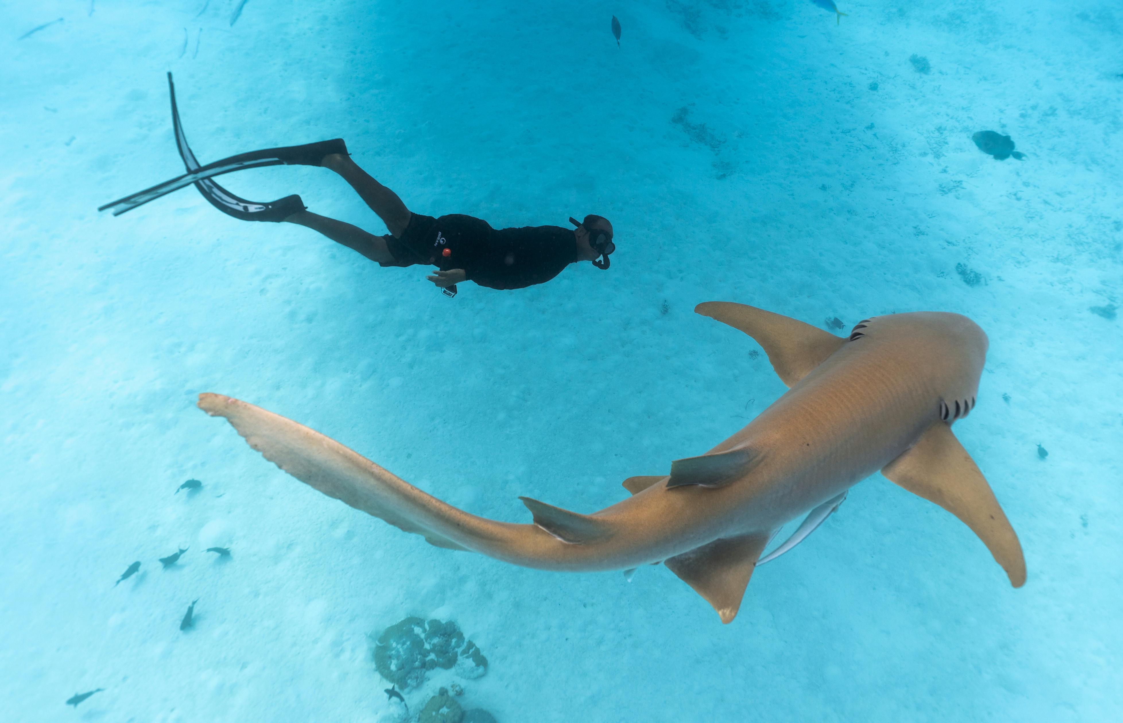Discover a guided snorkelling experience just moments from Maamunagau Island, where nurse sharks are often seen gliding through calm, crystal-clear waters. Learn about these gentle, bottom-dwelling sharks while observing them respectfully in their natural lagoon habitat.