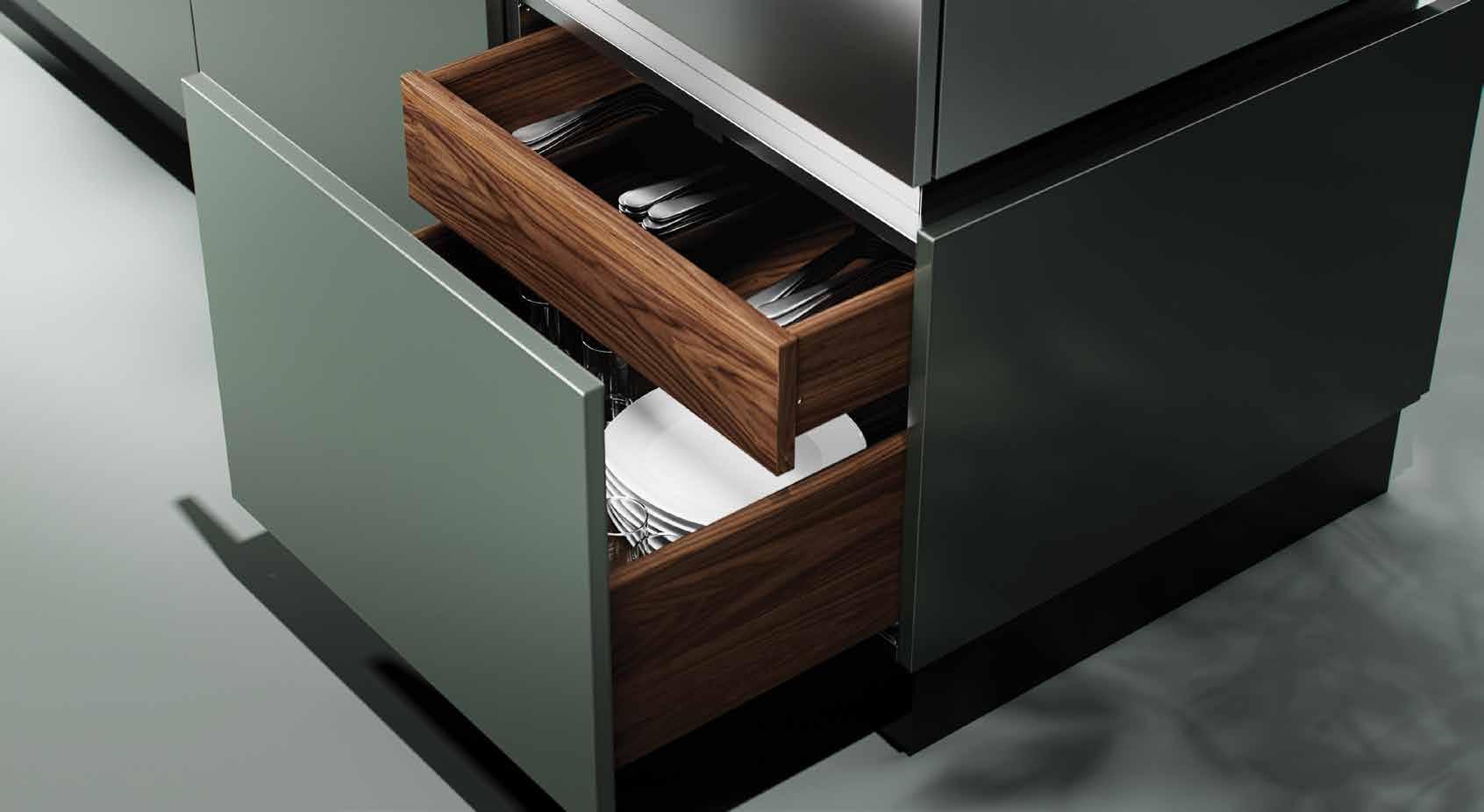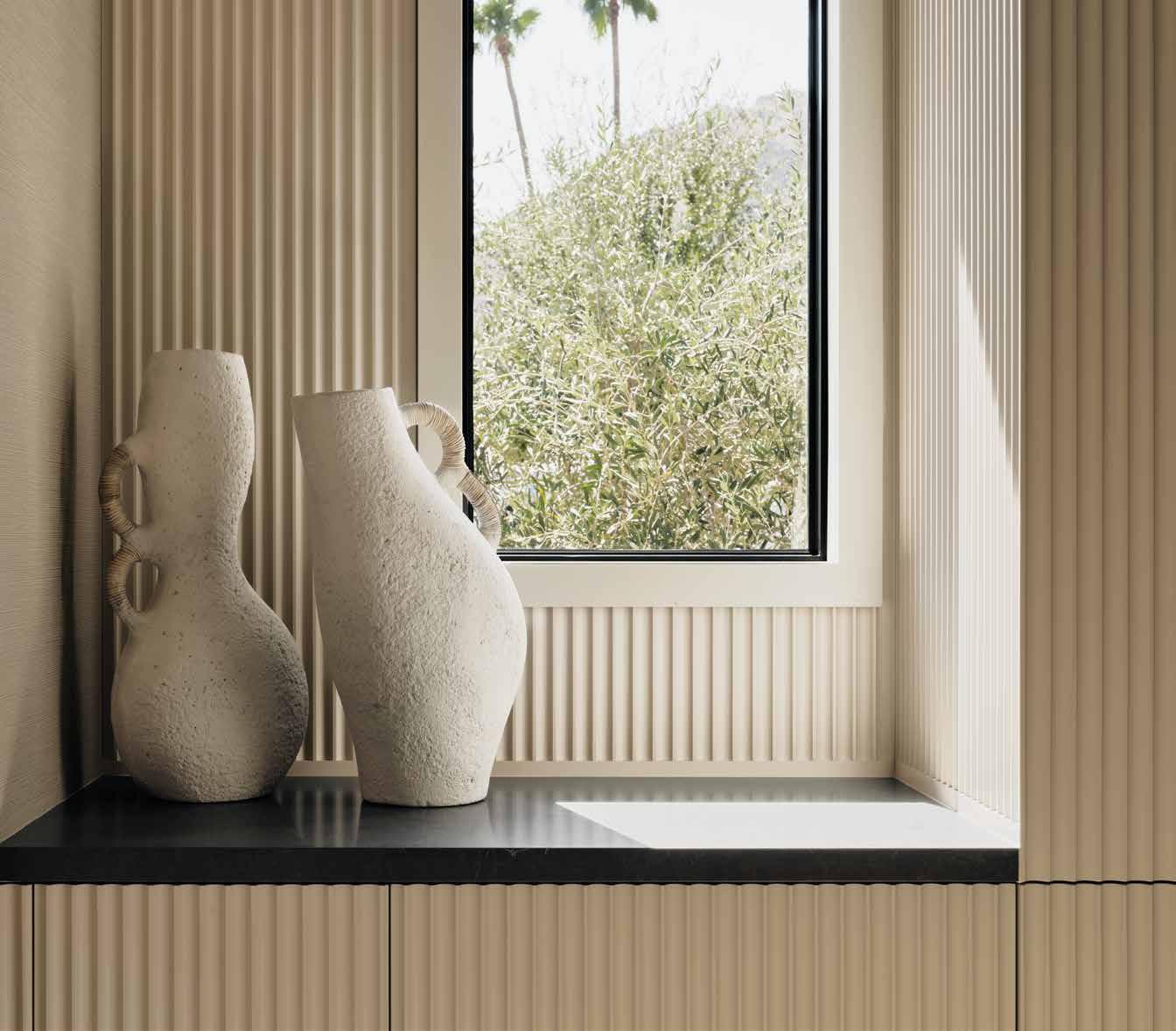 That variety is one of Febal Casa’s differentiators. “Details such as an aluminum edge or a aluminum frame for a specific finish may seem small, but they make a big impact,” Bobby says. Options span porcelain, painted glass, fluted wood, lacquer, Fenix and more—allowing styles from transitional to modern or minimalist.