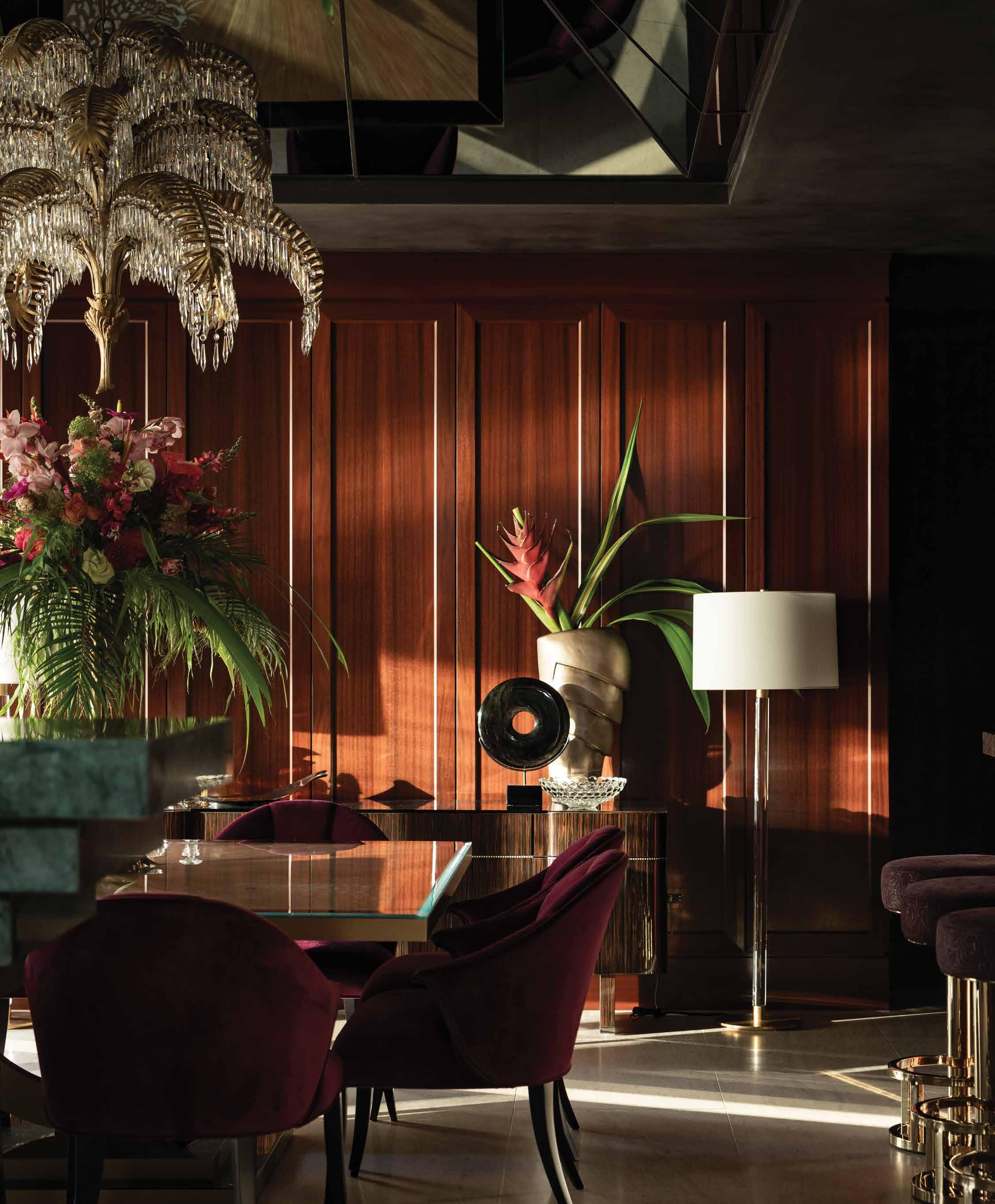 more than actual Art Deco,” Maynard notes. “I was inspired by old-school Miami Beach buildings and the black, green and gold of the Carbide & Carbon building in Chicago,” he says, referencing the tower on Michigan Avenue designed in the 1920s by the Burnham Brothers.