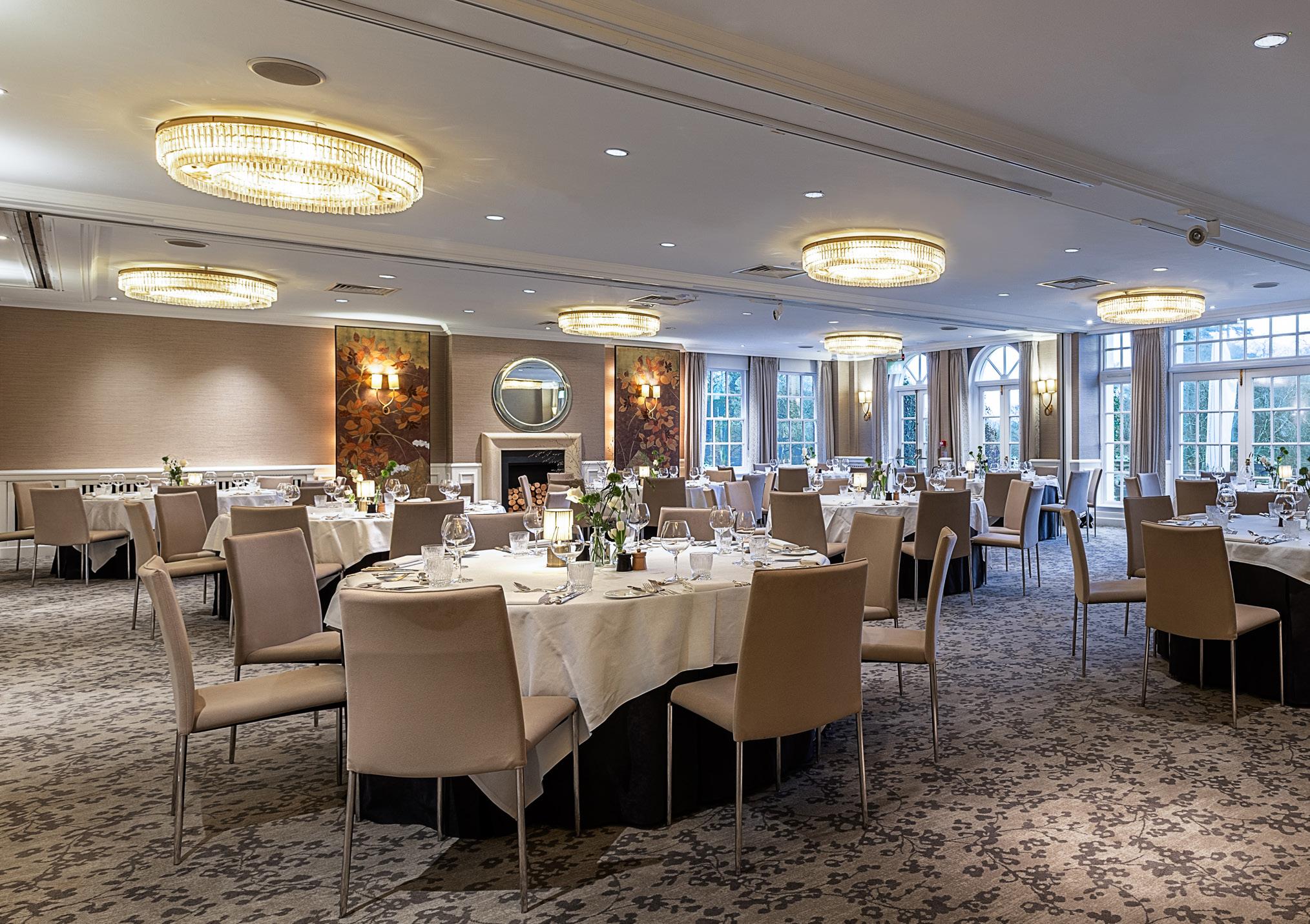 The Oak End Room is nestled in The Dining Room, flooded with daylight and boasts simply stunning views over the Hampshire grounds. The perfect location for meals with up to 24 guests.