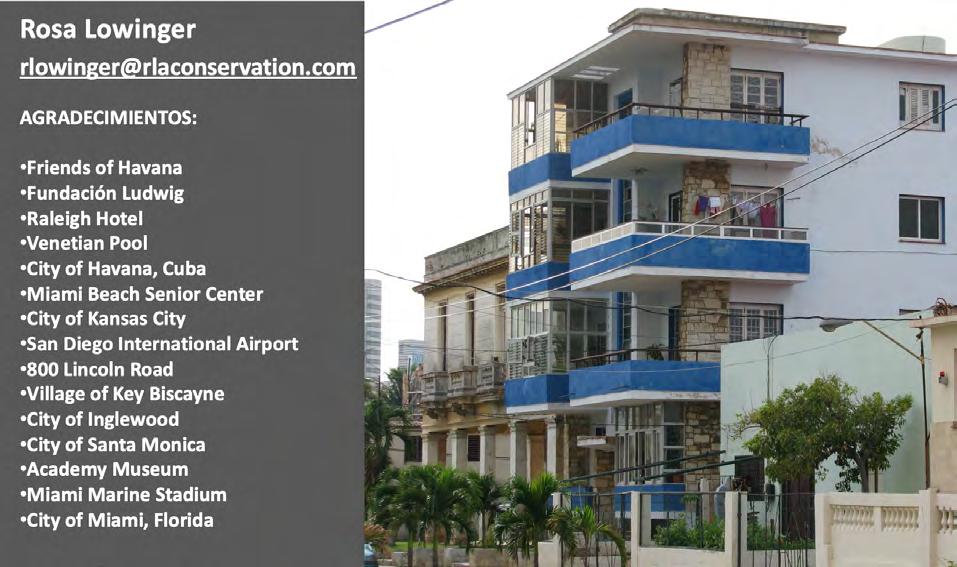 Rosa Lowinger es una conservadora y restauradora Cubana-Americana, nacida en Cuba, fundadora de varias empresas, la más reciente, RLA Conservation of Art + Architecture, LLC, una práctica con sede en Miami y Los Ángeles. Es autora de varias publicaciones sobre Cuba y conservación, entre ellos Tropicana Nights: The Life and Times of the Legendary Cuban Nightclub, Promising Paradise: Cuban Allure American Seduction; Dwell Time: A Memoir of Art, Exile, and Repair; el artículo de portada de Preservation Magazine en 1997 sobre Cuba; y el ensayo en el Getty Conservation Institute Bulletin titulado In Defense of Decorative Finishes, sobre las artes decorativas en edificios de La Habana. Posee una Maestría en Historia del Arte y Conservación del Instituto de Bellas Artes de la Universidad de Nueva York y es Fellow de la American Institute for Conservation, la