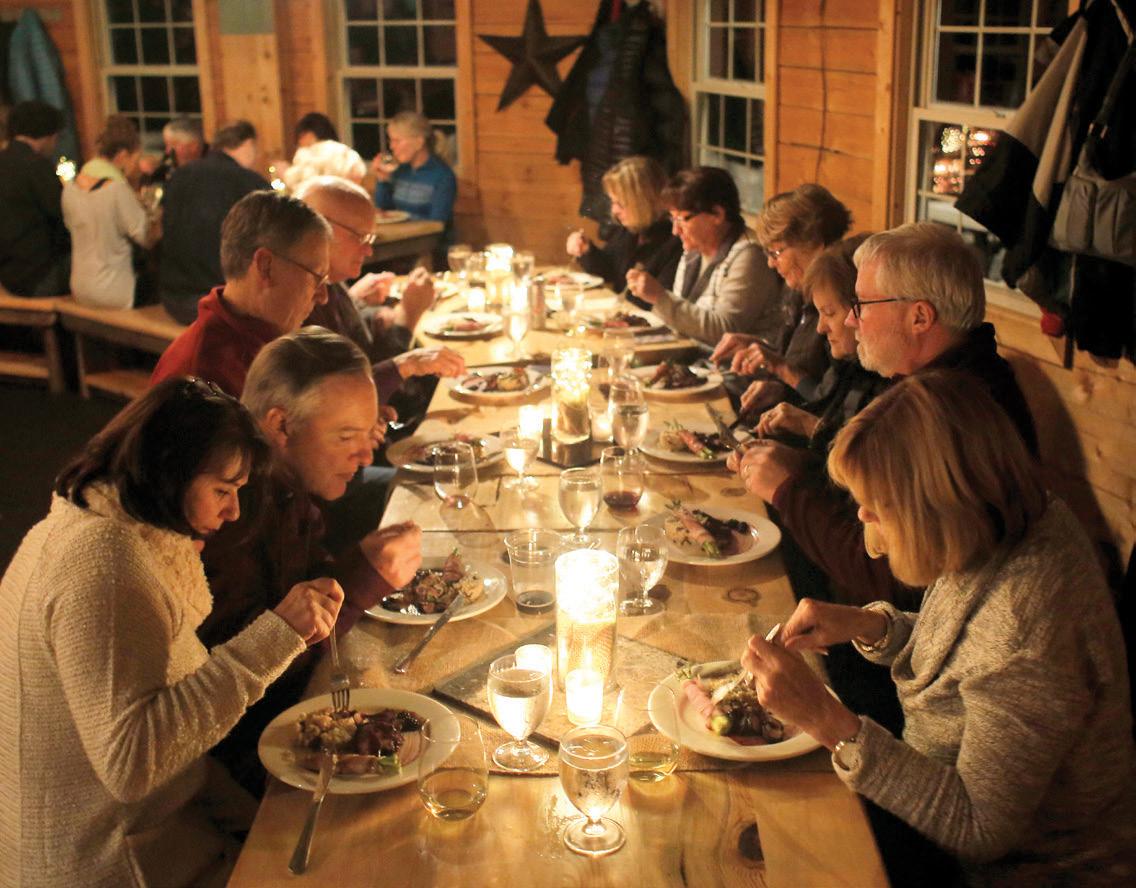 The Roundhouse captures the Sun Valley magic in a warm, cozy way, thanks in large part to a four-way stone fireplace that was designed to defrost guests throughout all angles of the octagonal structure. The building was designed with 46 windows, which has widely been regarded as a good decision due to the breathtaking nature of the surrounding landscape. In the kitchen, chefs unwilling to be upstaged by the scenery serve up a full, multi-course menu featuring decadent dishes such as king salmon, sous vide duck breast, buffalo short rib, and of course, fondue.