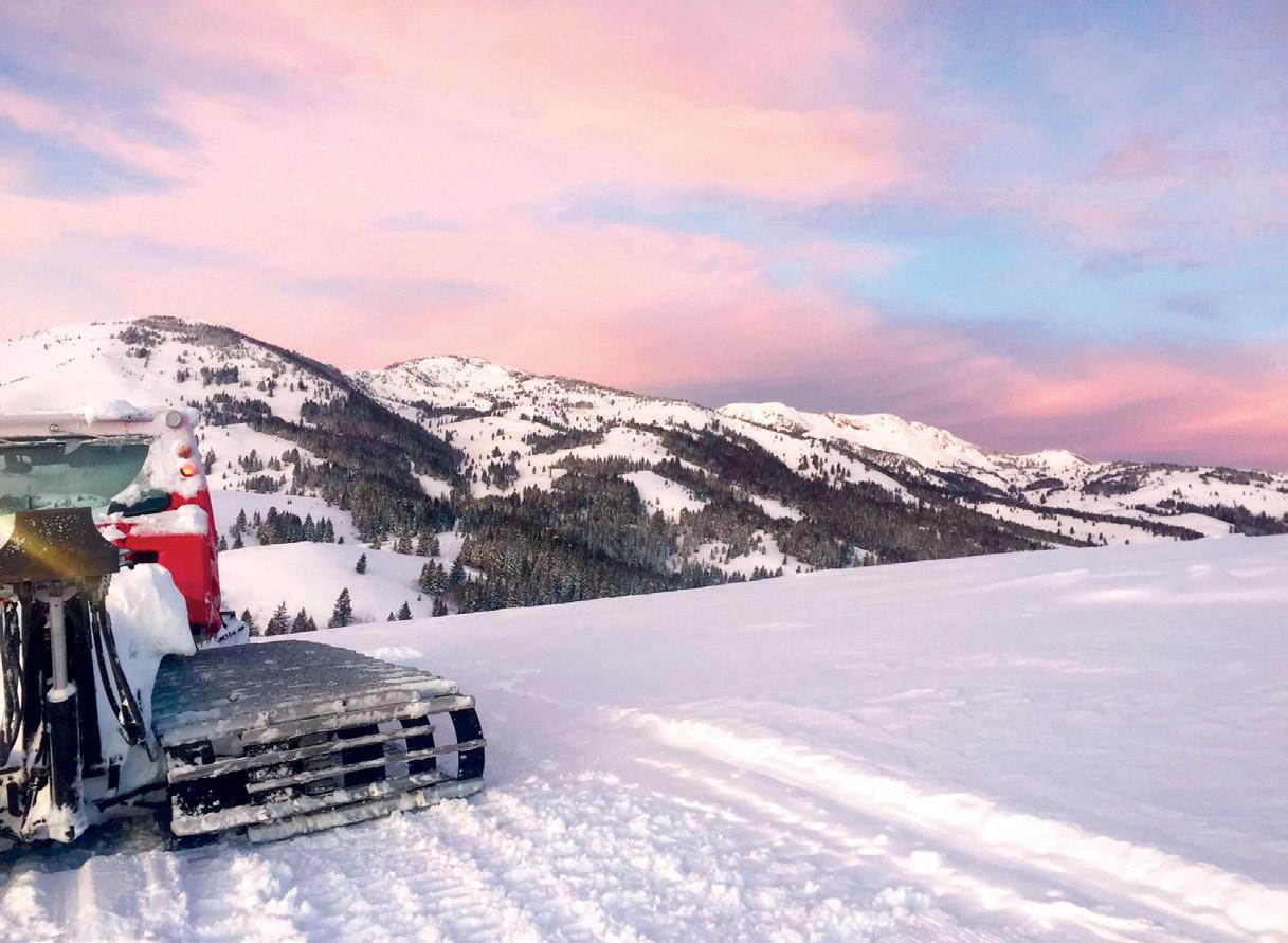 At Brundage Mountain, a signature after-hours dining experience came to life in 2017 when the resort saw the combined potential in its passenger snowcat fleet and charming mid-mountain Bear’s Den venue. After the lifts close and the powder hounds head home, a heated snowcat transports guests to a cozy log building where the culinary team rolls out a delightful fourcourse meal known as the “Dinner After Dark”.