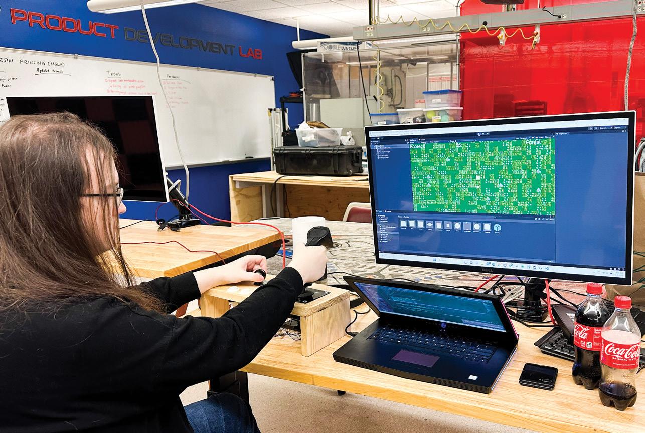 Jessica Lambert, a student design engineer and fourth-year mechanical engineering student with a minor in computer science, has been interested in pursuing engineering projects since high school. In her role as an advocate and mentor for newer colleagues, she helps to elevate students’ experiences at the lab while gaining hands-on exposure to design and development. “For entrepreneurs, we’re here to guide them through the very scary world of prototyping, iteration, and research and development,” said Lambert. “For students, we’re here to guide them through what a real career looks like, what working with industry partners [looks like], and getting to know the skills of the job—both soft skills and hard skills.” Students average between two to four clients at a time.