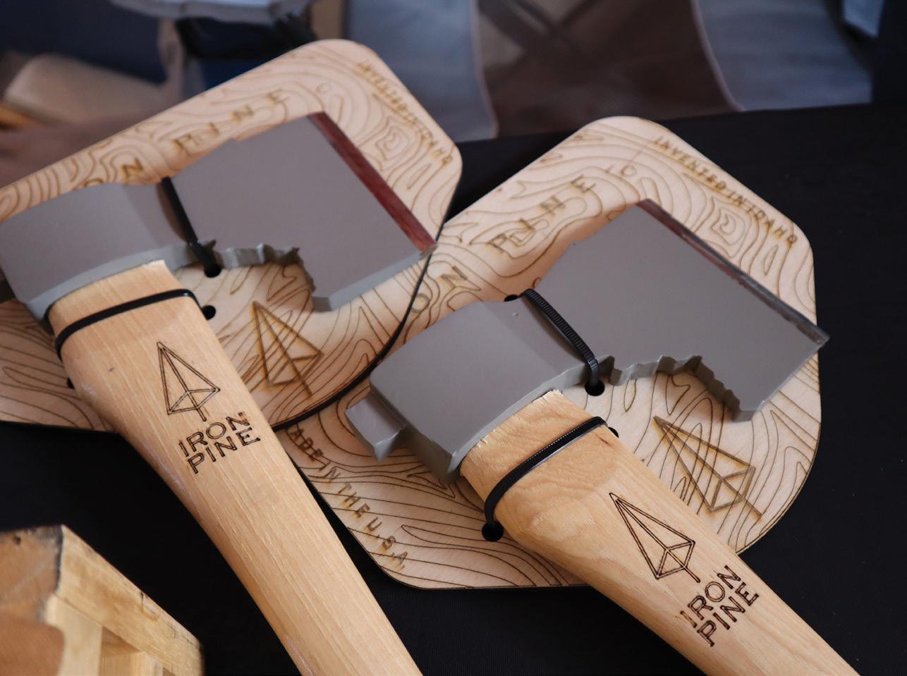 Maria Lopez, owner of Iron Pine, worked with the New Product Development Lab on the creation of the Iron Pine U.S. Patented Idaho Axe, a long handled axe that features an axe head shaped like the state of Idaho, which took many prototypes. The lab also worked to create packaging design, fly fishing equipment, expedition gear, updated manufacturing methods, graphic design, laser prototypes, and more for a variety of companies.