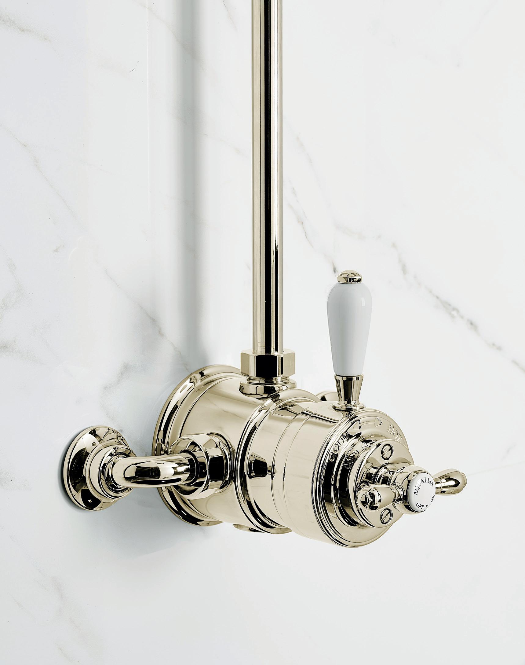 An iconic bathroom classic, this chrome-finish shower adds a timeless feel with a modern twist. Made from solid brass for longevity and reliability, the safe-touch valve ensures a safer showering experience for all. Thermostatic technology adds extra peace of mind.