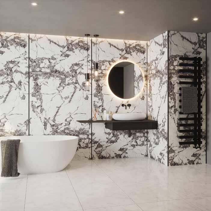 Each ceramic-look tile features printed grout lines on 2 sides to achieve a superb finish with minimal e ort