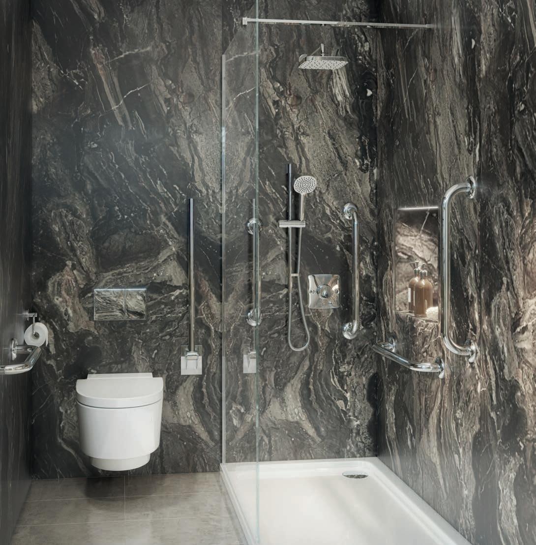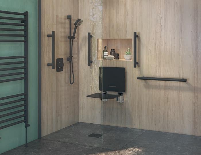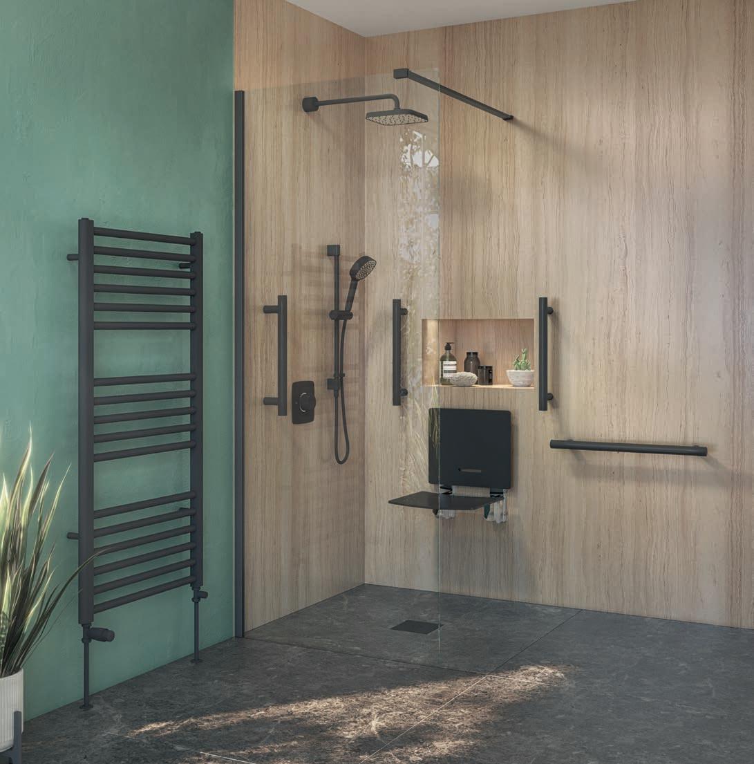 Low-level or flat shower tray profiles mean there’s no big step to negotiate when getting in and out, and grab rails or support bars keep you steady.