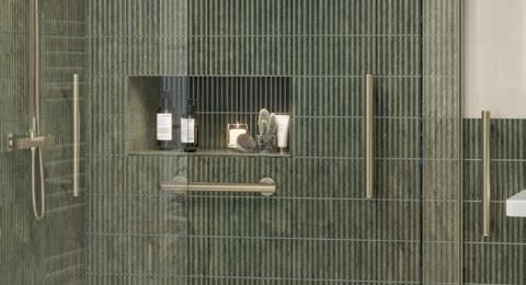 The size of your shower depends on the space available in your bathroom, but going as large as possible allows for the incorporation of a shower seat, which can be stand-alone or wall-mounted.