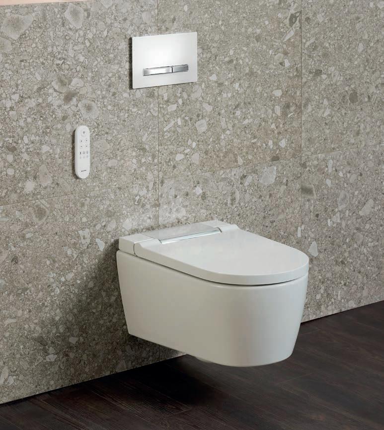 The Geberit AquaClean line of shower toilets combines elegant design with advanced features like a heated seat, odour extraction, and warm air drying. These features not only enhance comfort but also provide greater independence, especially for users who may otherwise require assistance. Remote controls or smartphone apps can be used to customize settings for di erent users, making shared use intuitive and seamless.